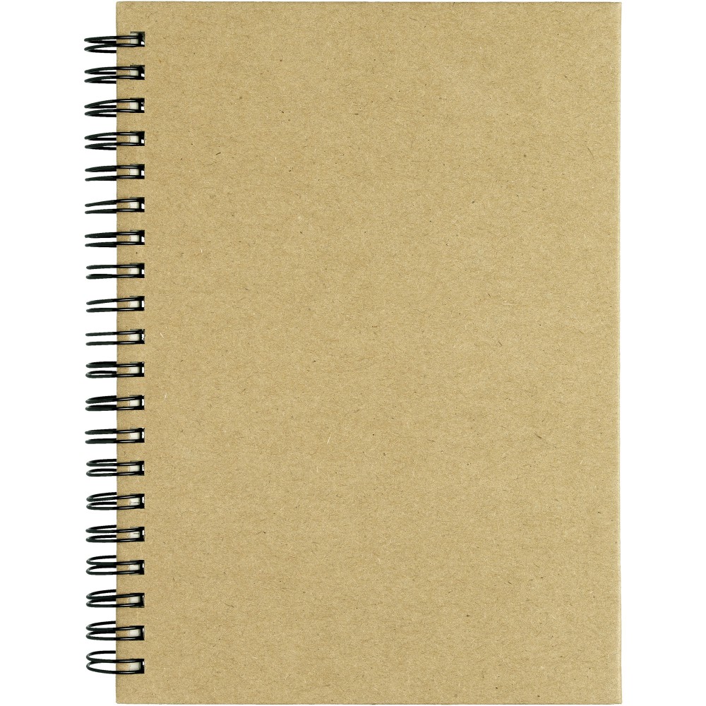 Jegyzetfüzet újrahasznosított papírból készült borítóval és 60 db újrahasznosított A6-os méretű, vonalas lappal (70 g/m2). Emblémázás: Szitanyomás, Tamponnyomás
