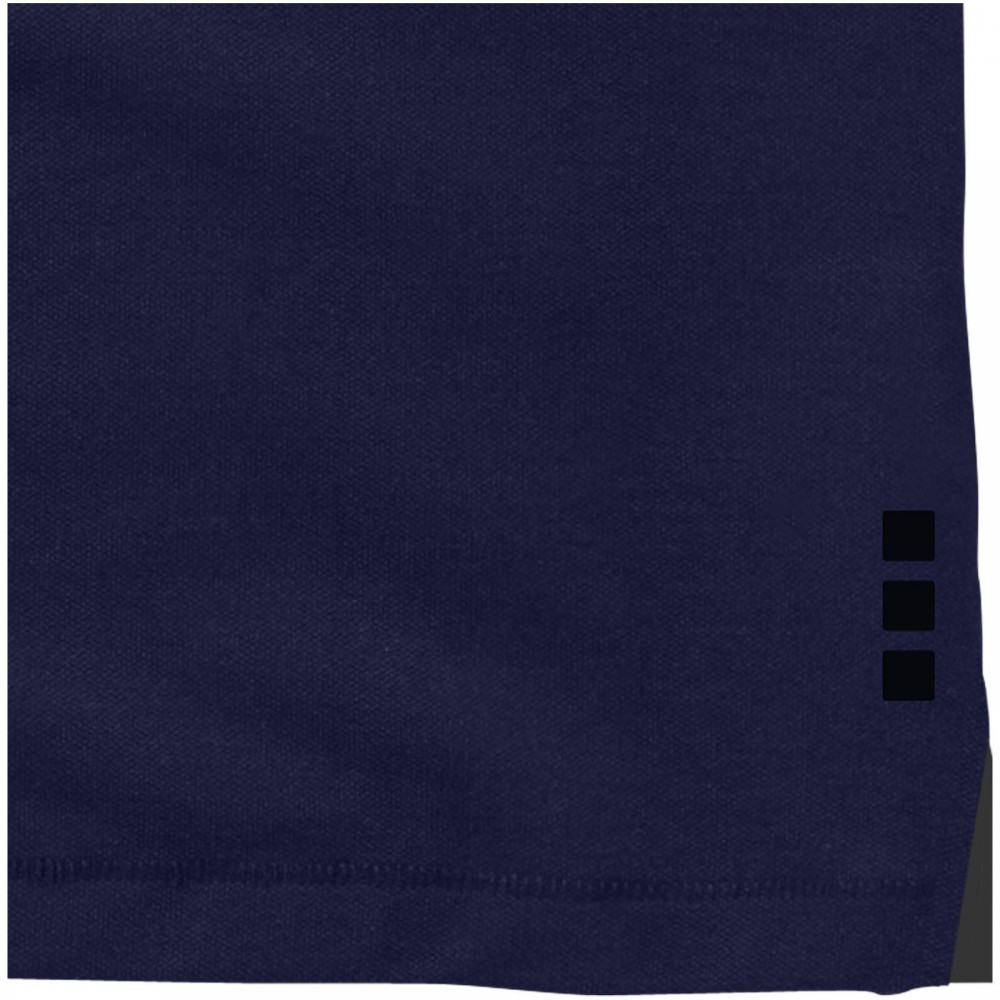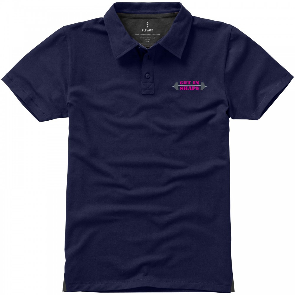 Normál szabásvonal. A férfi modell 3, a női 4 gravírozott, színben illeszkedő gombbal. Az oldalsliccben kontrasztos színű V-betét. Rejtett öltések. Tónusos logónyomat hátul. Kontrasztos színű félhold nyakbetét. Szatén szalagerősítés a nyakrészen. Saját anyagából készült gallér. Dupla piké, 95% pamut és 5% elasztán. 200g/m2. Emblémázás: Hímzés, Szitanyomás