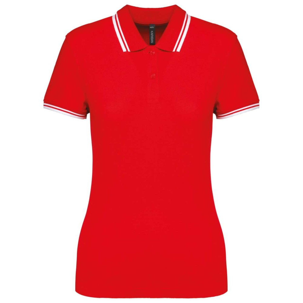 Kariban női rövidujjú galléros póló, Kelly Green/White