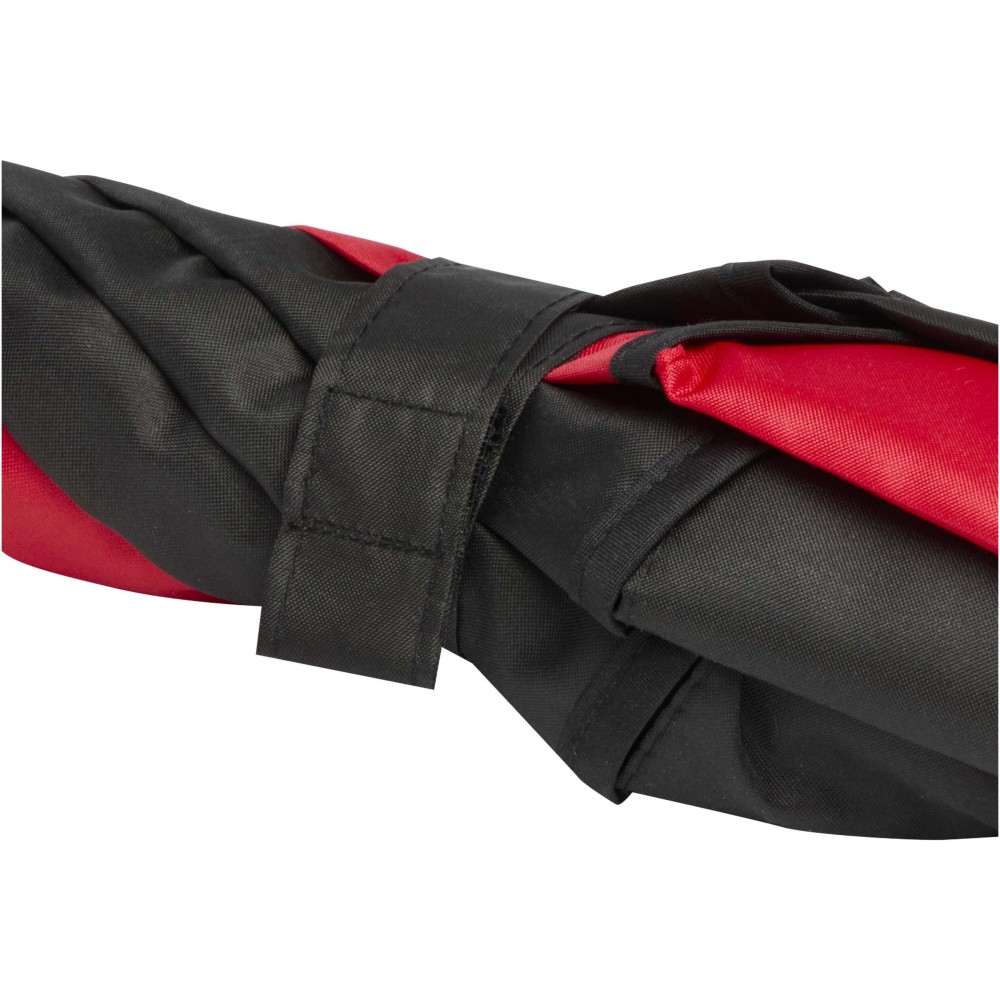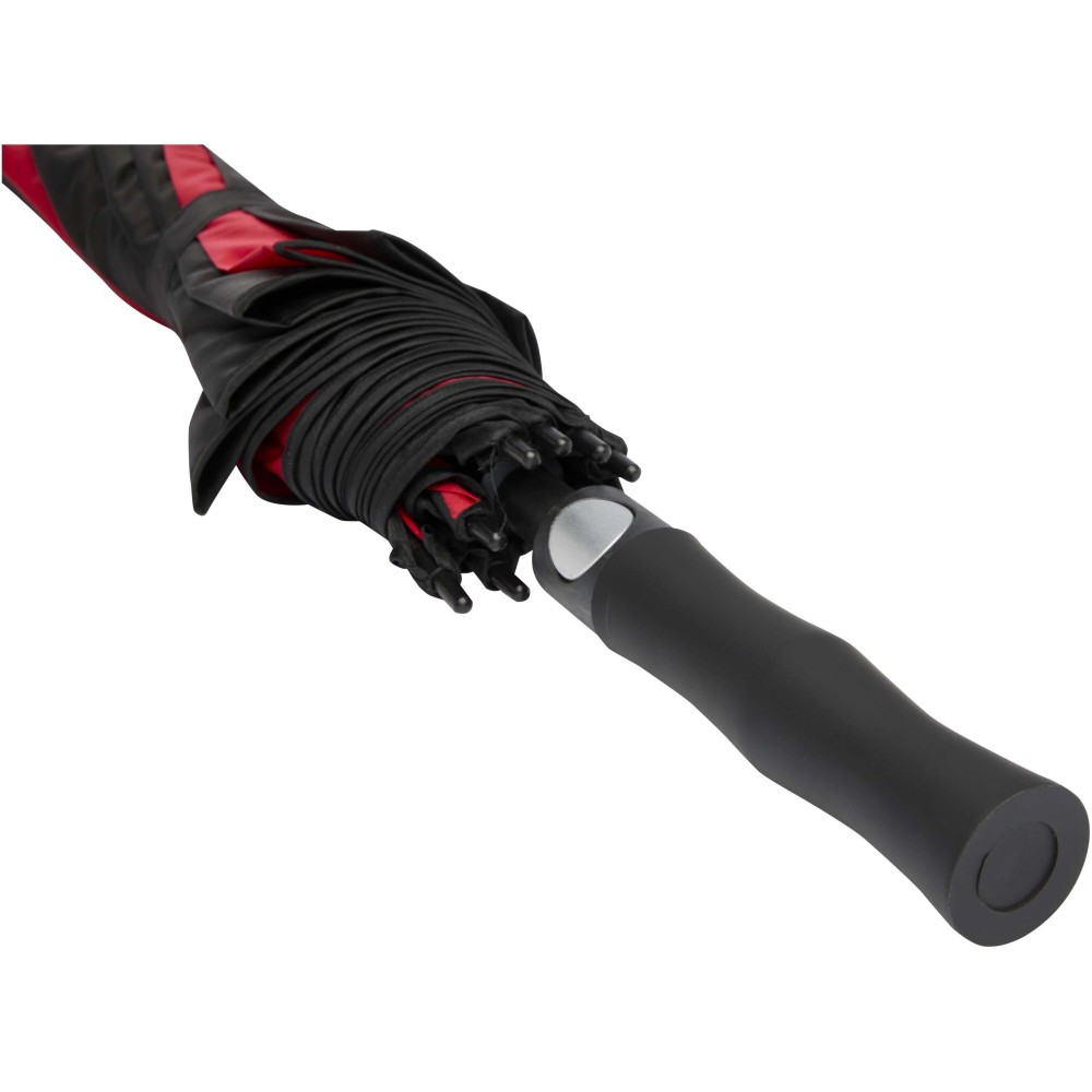 A Jeff szélálló golfesernyő tágas, 55 hüvelykes poliészter ernyőrésszel rendelkezik, amely kényelmesen megvéd több személyt is az időjárástól. Erős üvegszálas szára és váza kiváló rugalmasságot biztosít, így jól ellenáll az erős szélnek. Praktikus műanyag fogantyúja automata nyitógombbal van ellátva, ami gyors és egyszerű használatot tesz lehetővé. Kontrasztos ernyőpaneljei remek lehetőséget kínálnak feltűnő, látványos emblémázásra, így ideális választás rendezvényekhez, promóciókhoz vagy mindennapi használatra. Emblémázás: Szitanyomás