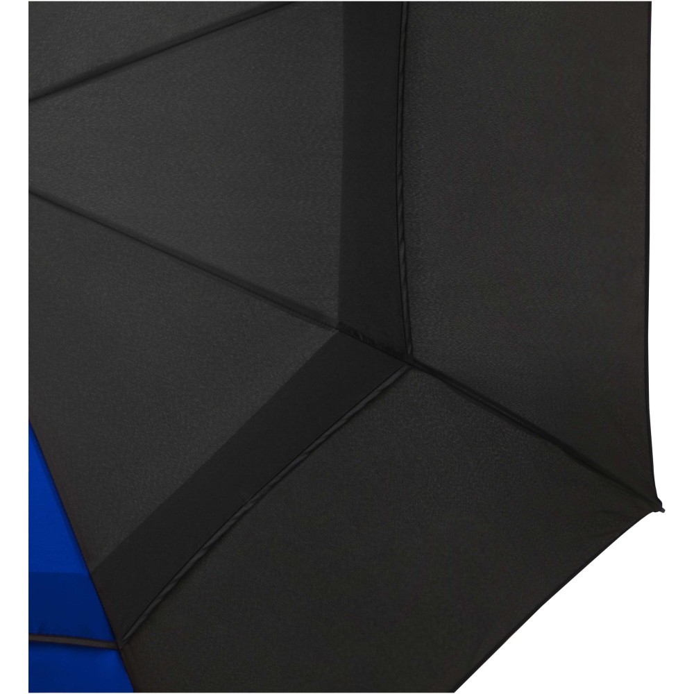 A Jeff szélálló golfesernyő tágas, 55 hüvelykes poliészter ernyőrésszel rendelkezik, amely kényelmesen megvéd több személyt is az időjárástól. Erős üvegszálas szára és váza kiváló rugalmasságot biztosít, így jól ellenáll az erős szélnek. Praktikus műanyag fogantyúja automata nyitógombbal van ellátva, ami gyors és egyszerű használatot tesz lehetővé. Kontrasztos ernyőpaneljei remek lehetőséget kínálnak feltűnő, látványos emblémázásra, így ideális választás rendezvényekhez, promóciókhoz vagy mindennapi használatra. Emblémázás: Szitanyomás