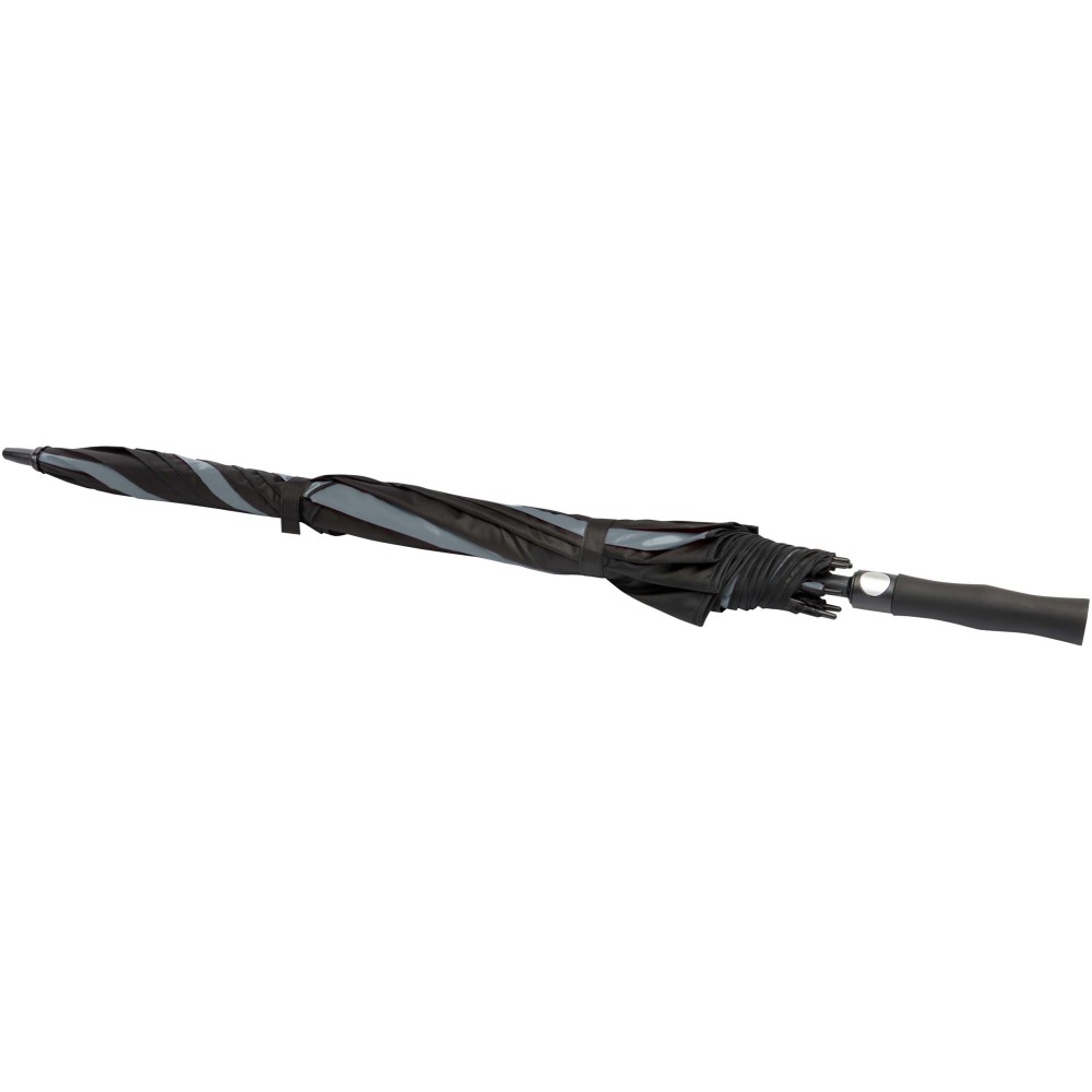 A Jeff szélálló golfesernyő tágas, 55 hüvelykes poliészter ernyőrésszel rendelkezik, amely kényelmesen megvéd több személyt is az időjárástól. Erős üvegszálas szára és váza kiváló rugalmasságot biztosít, így jól ellenáll az erős szélnek. Praktikus műanyag fogantyúja automata nyitógombbal van ellátva, ami gyors és egyszerű használatot tesz lehetővé. Kontrasztos ernyőpaneljei remek lehetőséget kínálnak feltűnő, látványos emblémázásra, így ideális választás rendezvényekhez, promóciókhoz vagy mindennapi használatra. Emblémázás: Szitanyomás