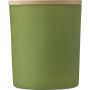 Üveggyertya növényi alapú viasszal és bambusz fedővel. A gyertya főleg növényi viaszt (karnaubaviaszt) tartalmaz, égési ideje körülbelül 20 óra. Négy illat az üveg színétől függően: fahéj (piros), vanília (fehér), szantálfa (fekete) és jázmin (zöld). Egyenként, fehér papírpalástba csomagolva. Emblémázás: Gravírozás, Tamponnyomás