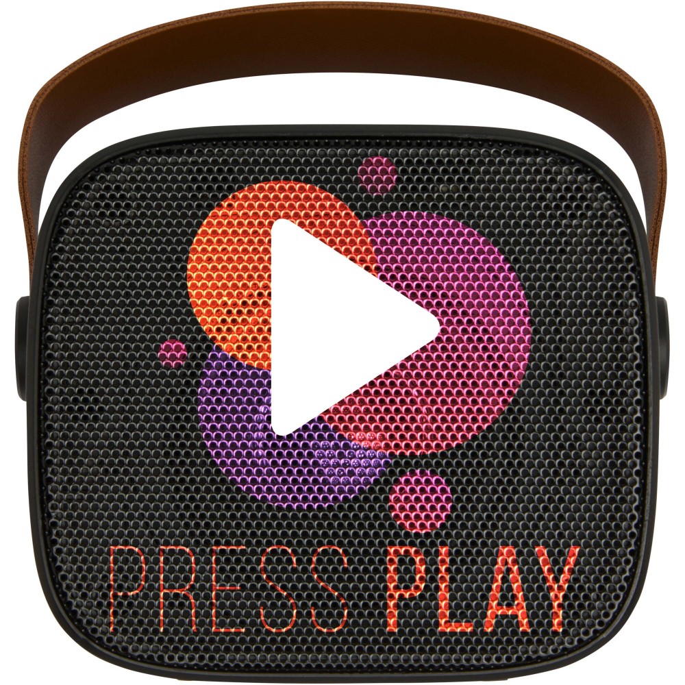 A Diya vezeték nélküli hangszóró újrahasznosított műanyagból készült, PU bőr pánttal a könnyű hordozhatóság érdekében. Erőteljes, 3 wattos hangzást biztosít, és támogatja az MP3-lejátszást Micro SD-kártyán keresztül. Kényelmes csatlakozást kínál vonalbemenettel, és egyszerűen tölthető a Type-C töltőporton keresztül. Maximális hangerőn a lejátszási idő körülbelül 3 óra, a teljes feltöltés (0-100%) pedig körülbelül 2 órát vesz igénybe. Emblémázás: Tamponnyomás
