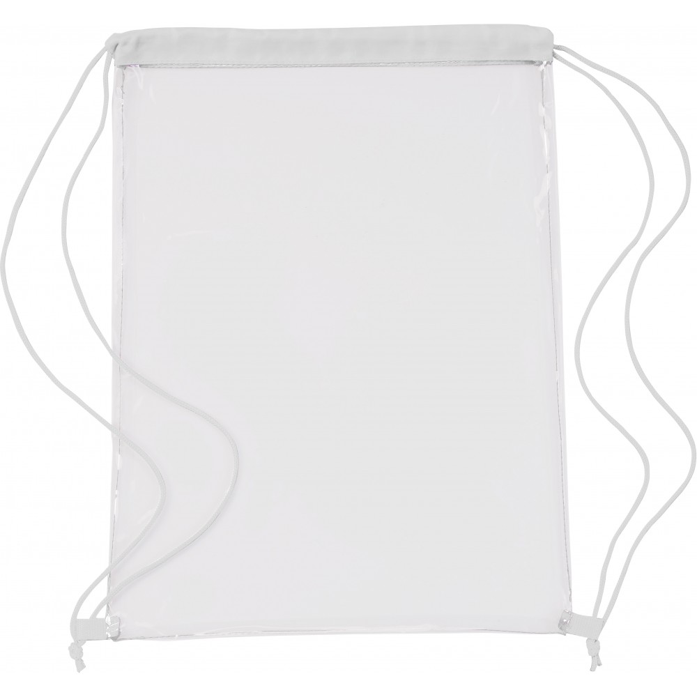 Átlátszó PVC tornazsák színes szegéllyel és összehúzó zsinórral. Emblémázás: Szitanyomás