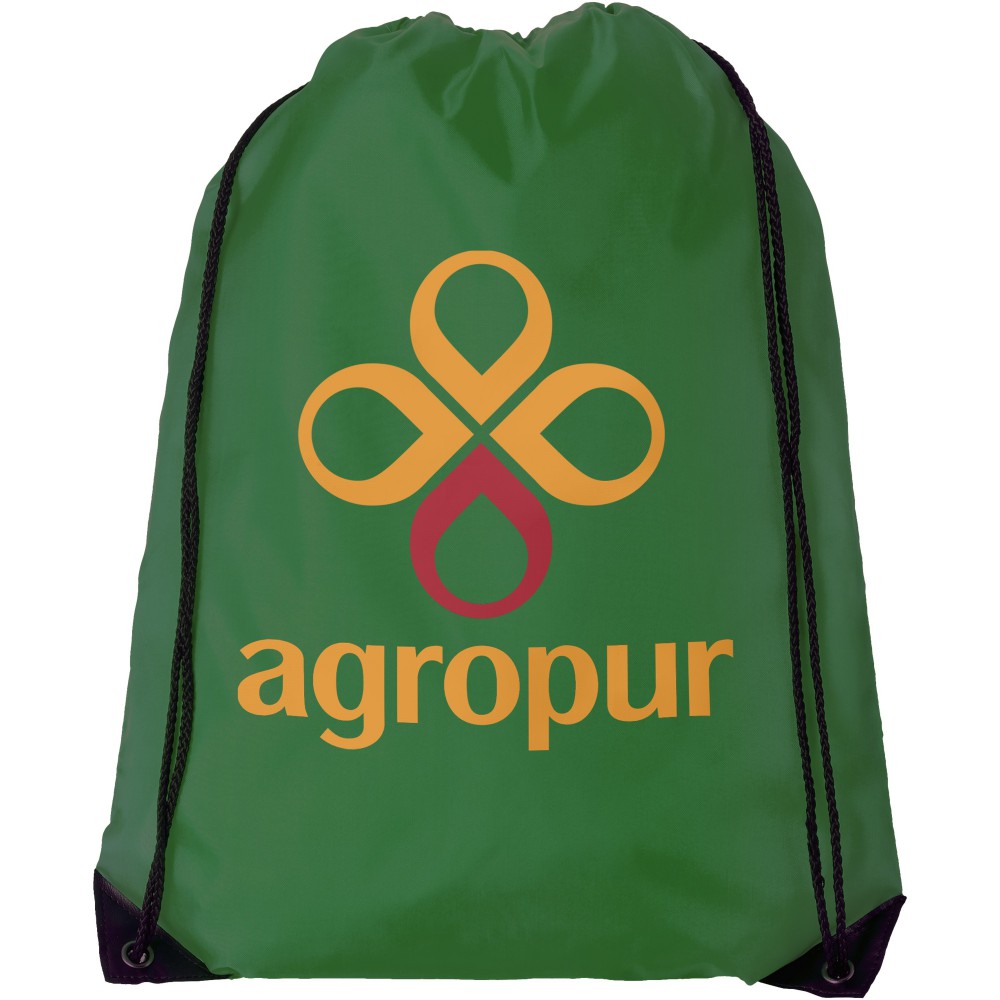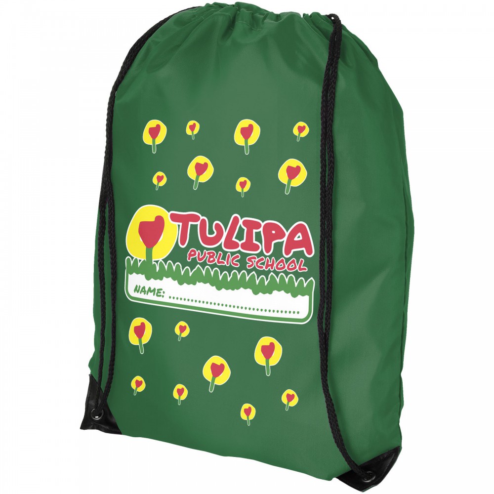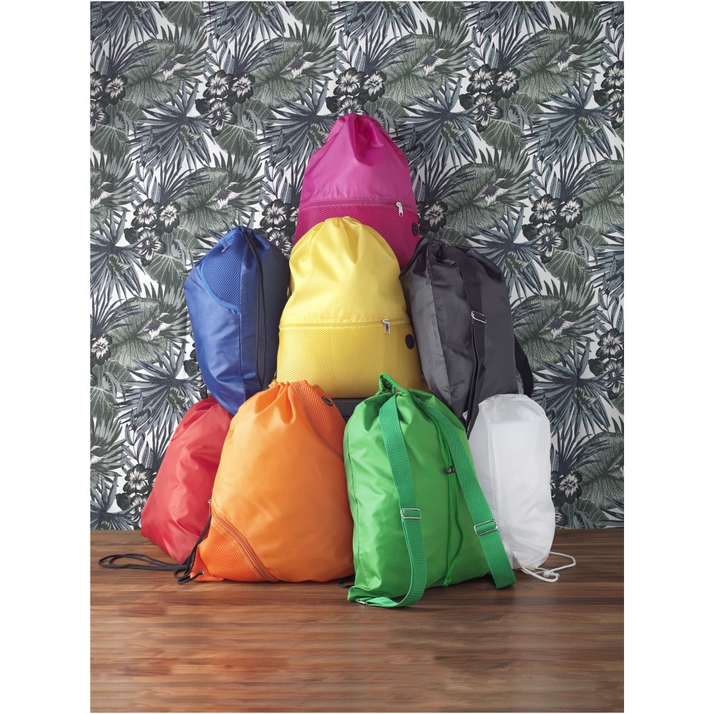 Húzózsinórral zárható nagy fő rekesz. A húzózsinór kialakítása miatt vállon vagy hátizsákként is használható. 210D Polyester. Emblémázás: Szublimálás, Szitanyomás