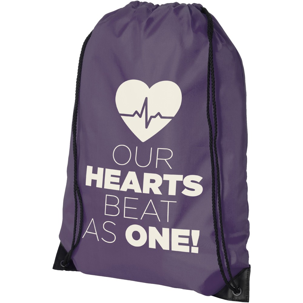 Húzózsinórral zárható nagy fő rekesz. A húzózsinór kialakítása miatt vállon vagy hátizsákként is használható. 210D Polyester. Emblémázás: Szublimálás, Szitanyomás