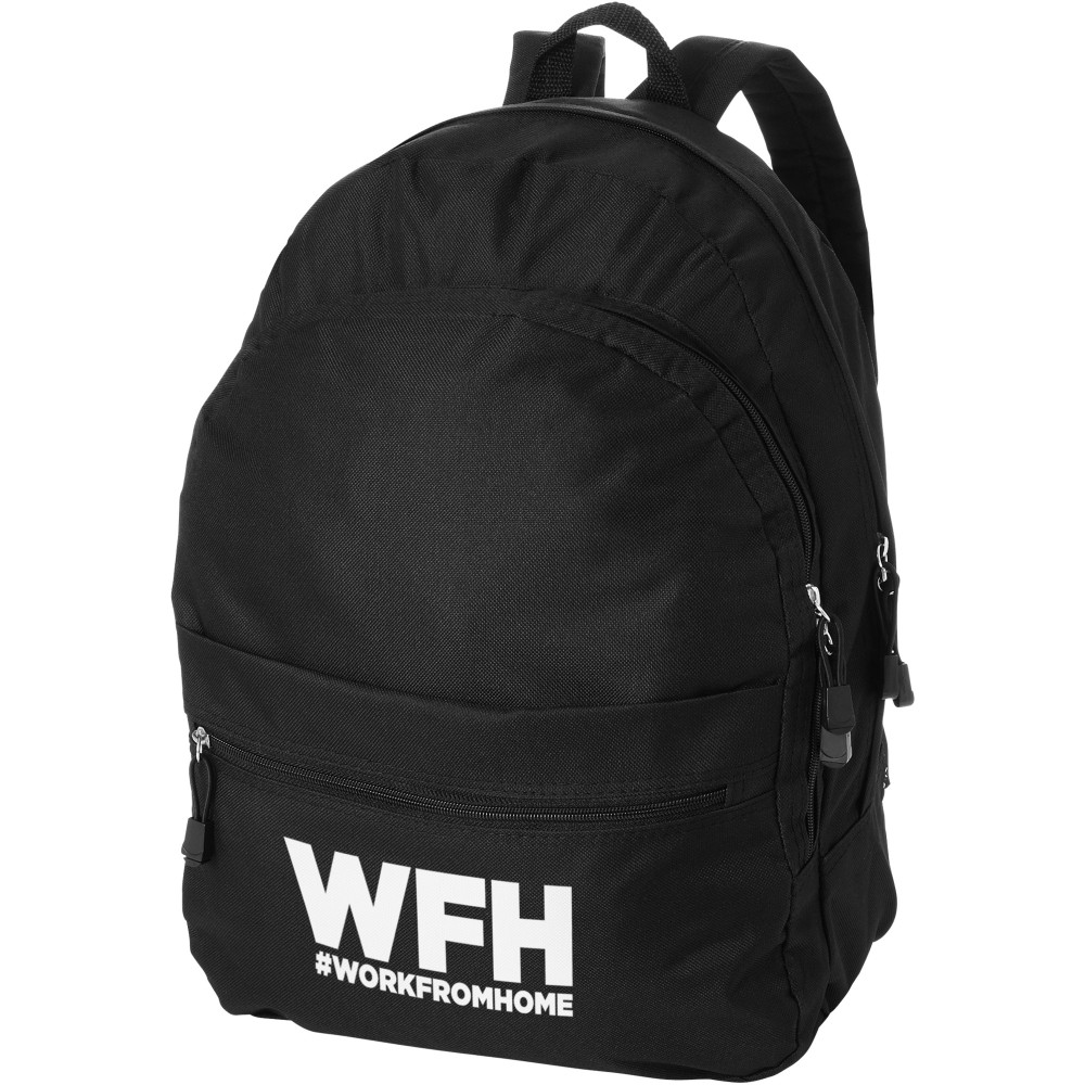 A kényelmes Trend hátizsák nyerő a promóciós hátizsákok között. A divatos kialakítású táska négy rekesszel rendelkezik: két cipzáras rekesszel, egy elülső cipzáras zsebbel és egy tépőzáras elülső zsebbel, így bőséges helyet kínál nagy és kis tárgyak tárolására egyaránt. A termék 600D poliészterből készült. Emblémázás: Hímzés, Szitanyomás