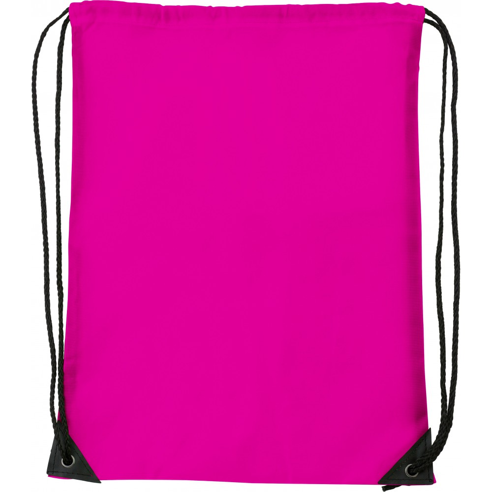 Tornazsák erősített sarkokkal és nylon húzózsinórral. 210D poliészter. Emblémázás: Szitanyomás