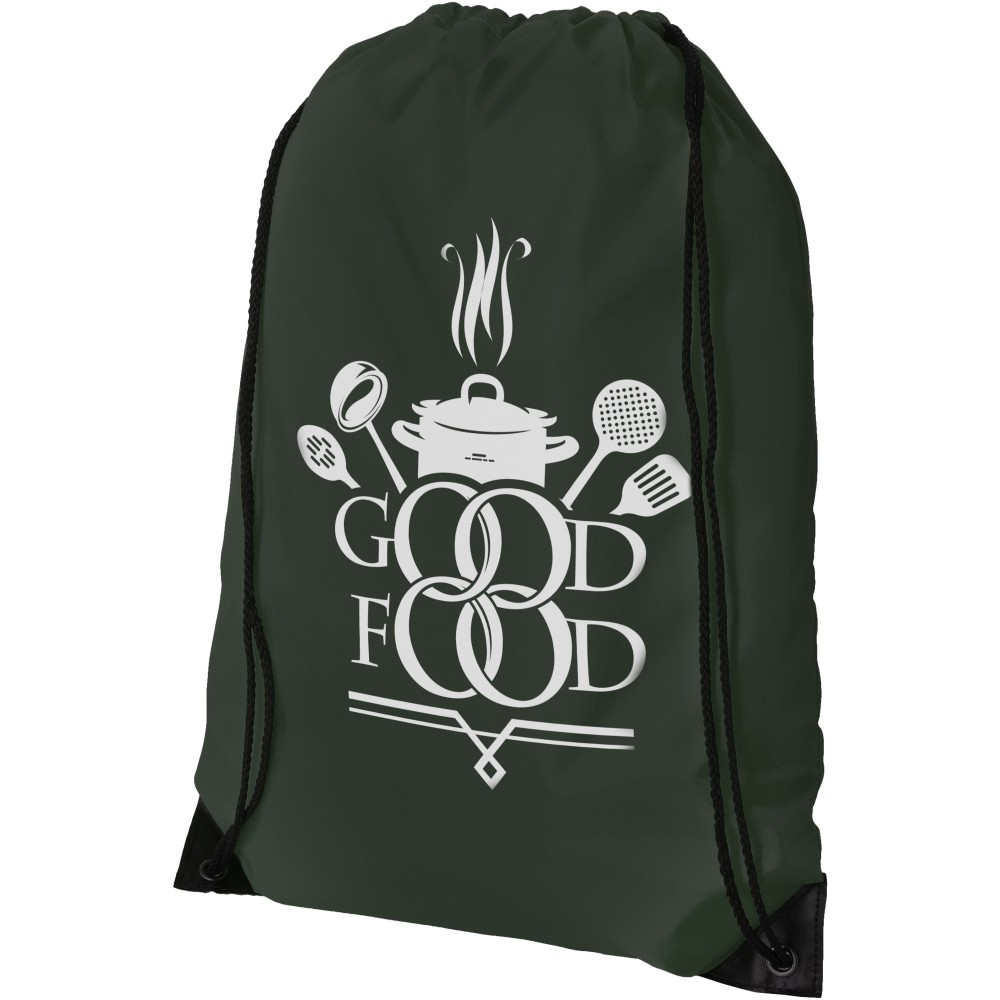 Húzózsinórral zárható nagy fő rekesz. A húzózsinór kialakítása miatt vállon vagy hátizsákként is használható. 210D Polyester. Emblémázás: Szublimálás, Szitanyomás