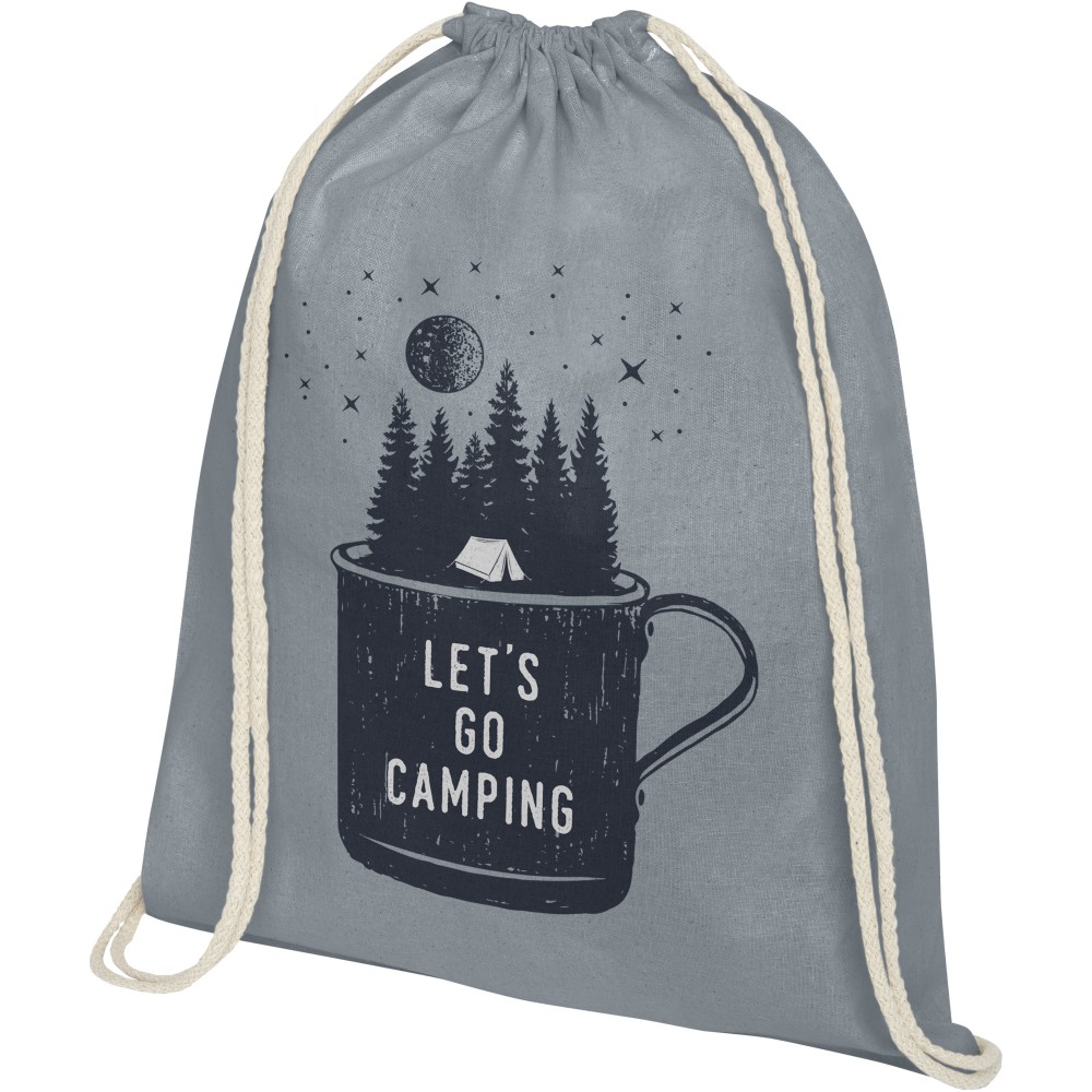 Tornazsák natúr húzózsinórral. Teherbírás: 5 kg. 140 g/m2 pamut. Pamut, 140 g/m2. Emblémázás: Szitanyomás