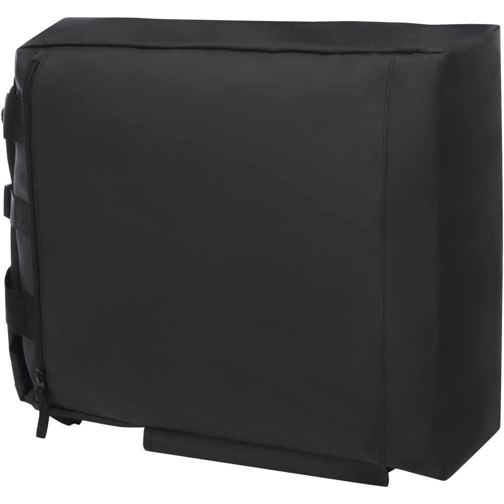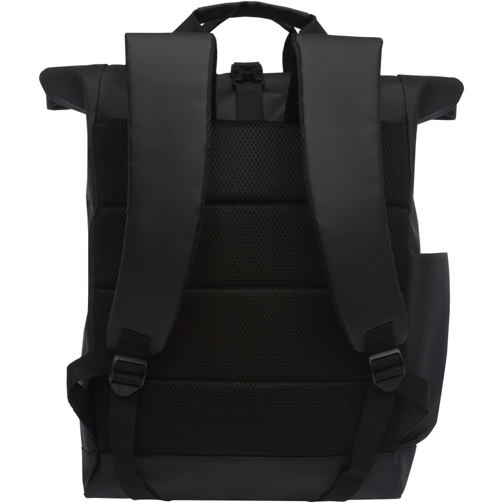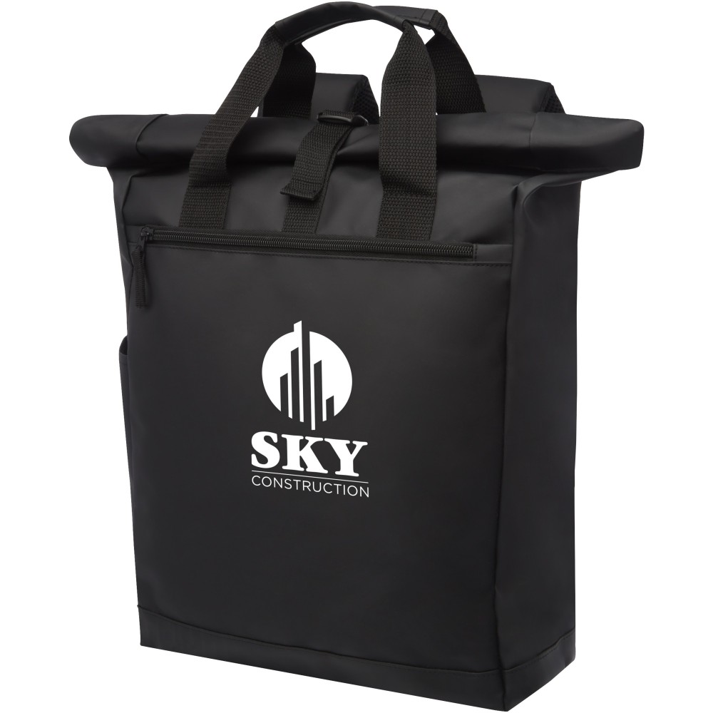 Vízálló hátizsák párnázott laptoptartóval, párnázott állítható vállpántokkal, cipzáras fő rekesszel, feltekerhető zárással és 2 füllel. Vitorlavászon. Emblémázás: Hímzés, Szitanyomás