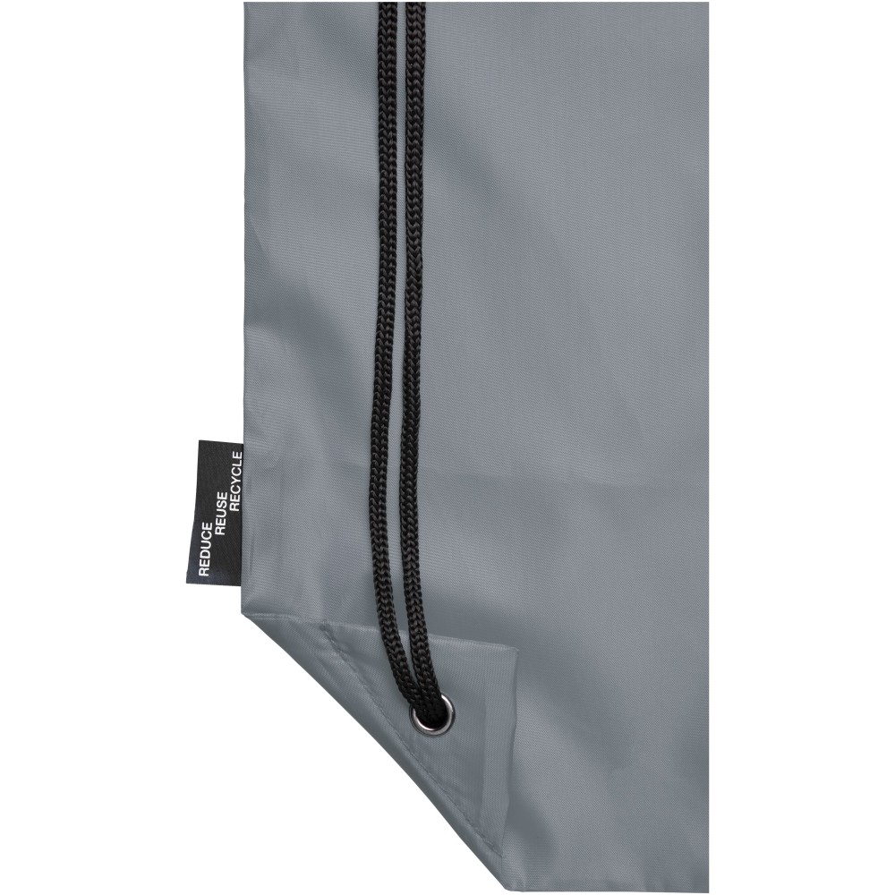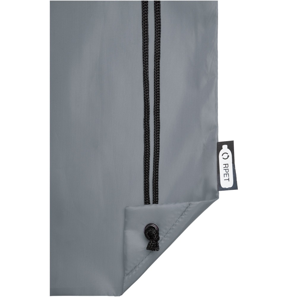 Tornazsák 100% -ban újrahasznosított műanyagból. Nagy tárolórész, fekete húzózsinórral. Mérete: 33*44 cm. Űrtartalom: 5 liter, teherbírás: 5 kg-ig. Emblémázás: Szitanyomás