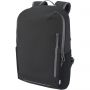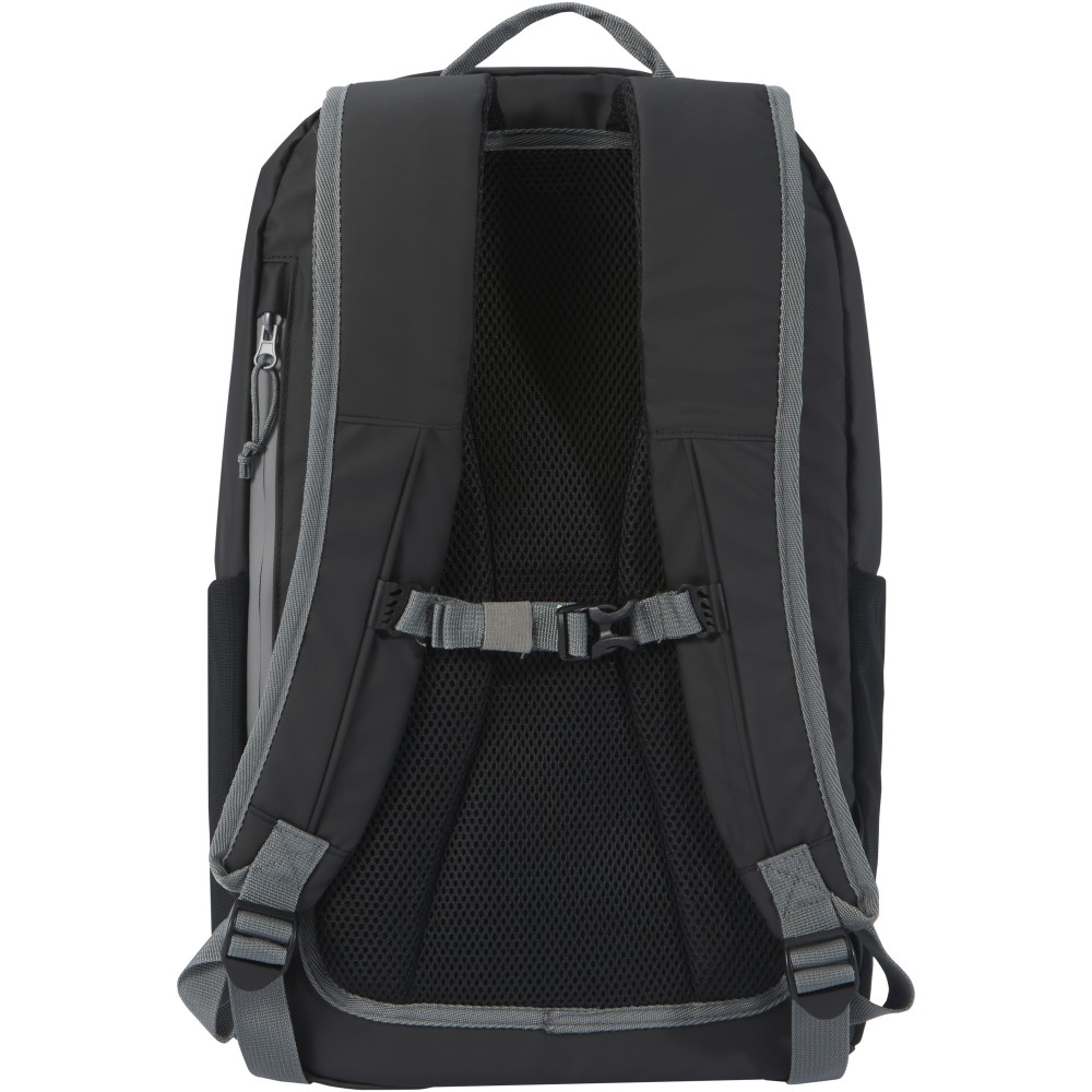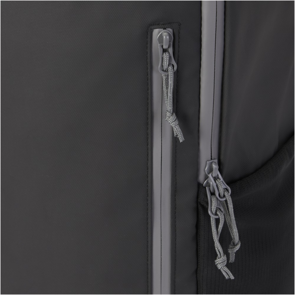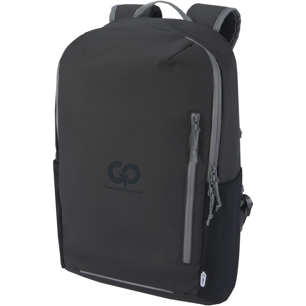 Vízálló laptop hátizsák GRS tanúsítvánnyal rendelkező újrahasznosított anyagokból, beleértve a cipzárakat is. Bélelt 15 -os laptoprekesszel rendelkezik, oldalsó nyílással a gyors hozzáférés érdekében, több hálós zsebbel, cipzáras elülső zsebbel és fényvisszaverő csíkokkal a láthatóság érdekében. A formázott és párnázott hátlapnak és az állítható mellkaspántnak köszönhetően még teljesen megrakott állapotban is kényelmesen hordozható. A GRS újrahasznosított anyagai közé tartozik a főszövet, a bélés, a pántok és a cipzárak. Űrtartalom: 21 liter. PVC-mentes. Emblémázás: Szitanyomás