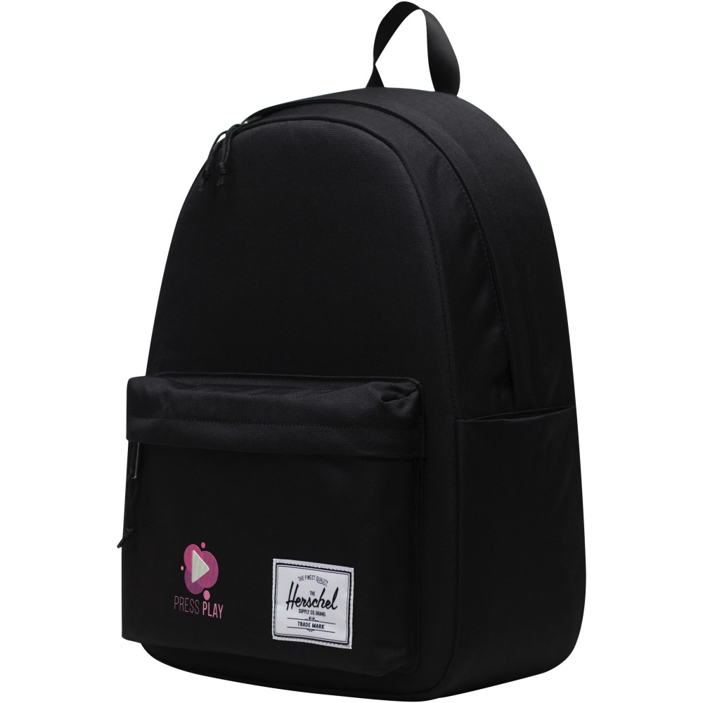 Készülj fel a következő kalandodra a Herschel Classic hátizsákkal, amely bőséges helyet biztosít minden lényeges dolognak. A hátizsák szakértő módon 100%-ban fenntartható EcoSystem anyagokból készült, így biztosítva, hogy tiszta lelkiismerettel kalandozhass. A 600D anyag mesterien, 100%-ban újrahasznosított vizespalackokból készült, kivételes tartósságot biztosítva. A hátizsák belsejében egy párnázott tokot fedezhetsz fel, amely biztonságos helyet biztosít a 15 /16 laptopodnak. Az állítható és párnázott vállpántok biztosítják a kényelmet a hosszú utazások során. A hátizsákot külön vizespalackzsebbel és elülső zsebbel tervezték, így könnyedén tárolhat kisebb tárgyakat. A 26 literes térfogatával a Herschel Classic hátizsák tökéletes társ minden kalandhoz. Emblémázás: Hímzés