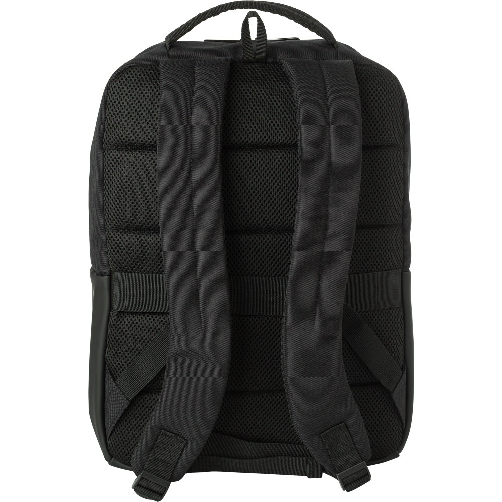 Poliészter (600D) laptophátizsák (15 colos). Egy nagy cipzáras rekesz a tetején, belül több rekesszel. Kis cipzáras rekesz az elején. Megerősített hátoldal és állítható pántok. Emblémázás: Szitanyomás