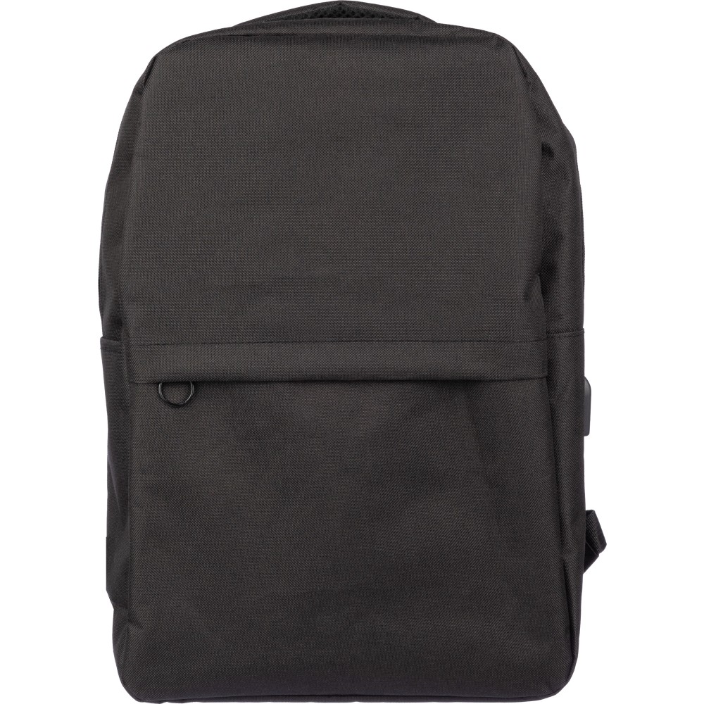RPET 600D hátizsák USB port kimenettel (belül USB kábellel) nagy cipzáras rekesszel a felső oldalon és cipzáras zsebbel az elején. Belül van egy rekesz a 10 incses készülék és egy a 15 incses készülék számára. Állítható fogantyúkkal. Emblémázás: Hímzés, Szitanyomás