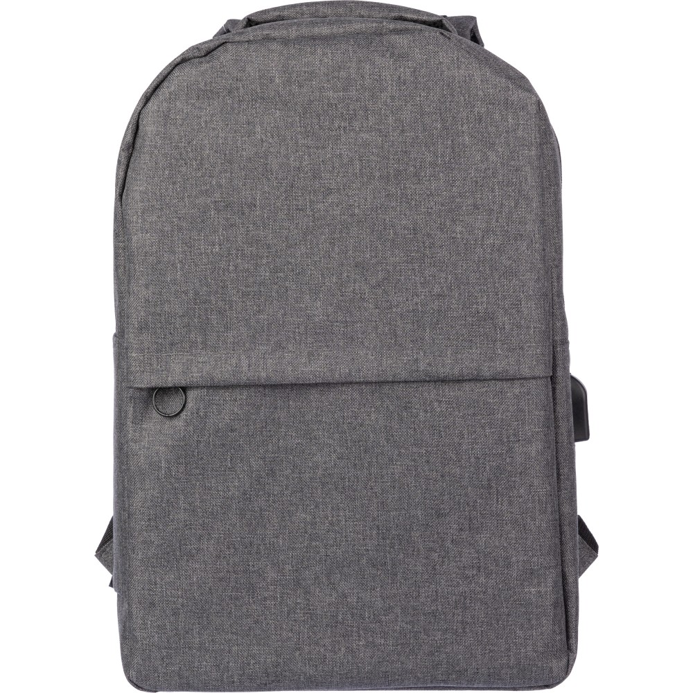 RPET 600D hátizsák USB port kimenettel (belül USB kábellel) nagy cipzáras rekesszel a felső oldalon és cipzáras zsebbel az elején. Belül van egy rekesz a 10 incses készülék és egy a 15 incses készülék számára. Állítható fogantyúkkal. Emblémázás: Hímzés, Szitanyomás
