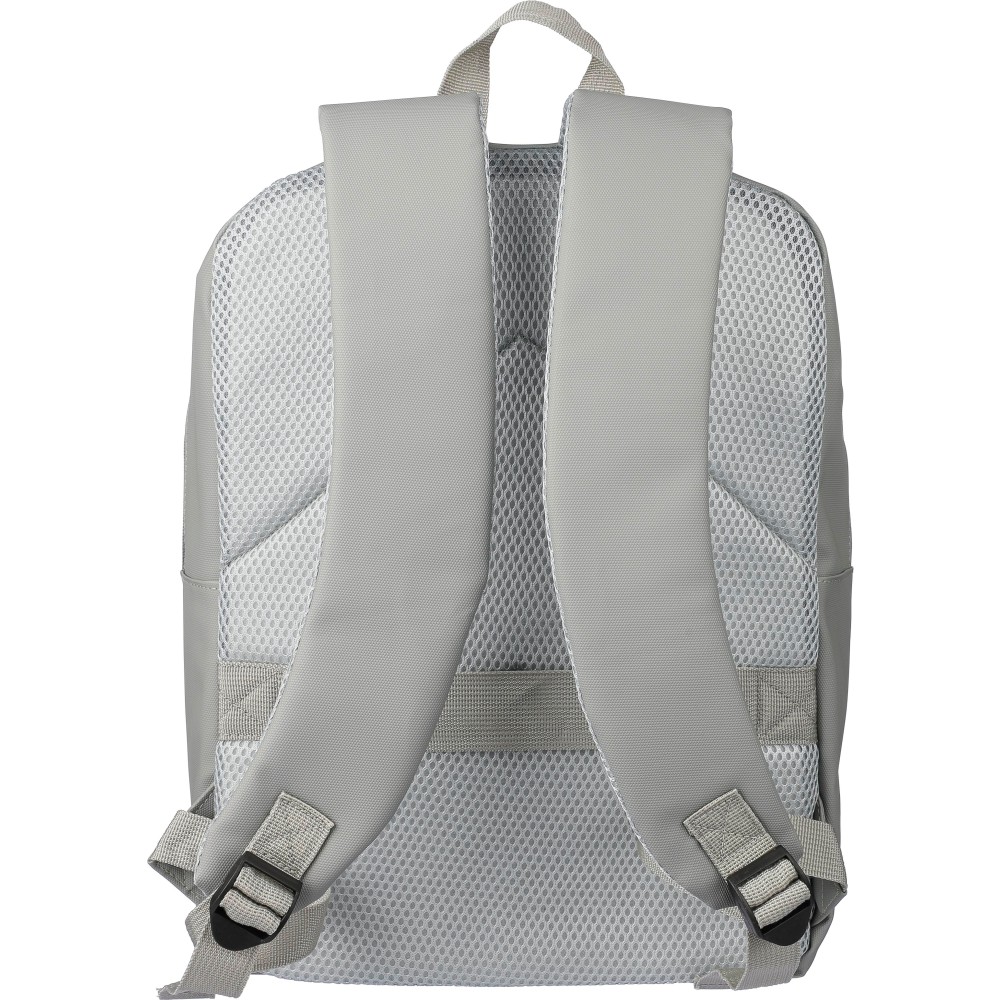 Laptop hátizsák 15 -es készülékhez. Két cipzáras elülső zsebbel, egy nagy cipzáras rekesszel és tépőzáras laptoprésszel, valamint több belső zsebbel. Szellőző, párnázott hátoldallal, trolifogantyúval és állítható vállpántokkal. Vízlepergető. Anyaga: PU. Emblémázás: Szitanyomás