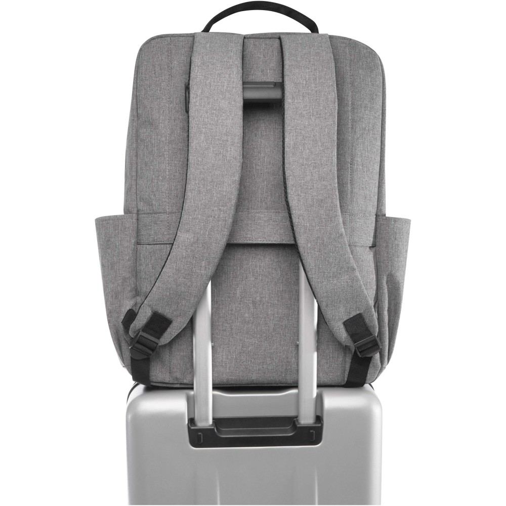A Libra hátizsák GRS tanúsítvánnyal rendelkező újrahasznosított poliészterből, illetve RPET béléssel készült. 15?-os laptoprekesszel, külön párnázott tabletzsebbel és belső rendszerező zsebekkel rendelkezik. Külső részén számos zseb, párnázott, állítható vállpántok és egy bőröndpánt található. Teherbírás: akár 10 kg. Emblémázás: Hímzés, Szitanyomás