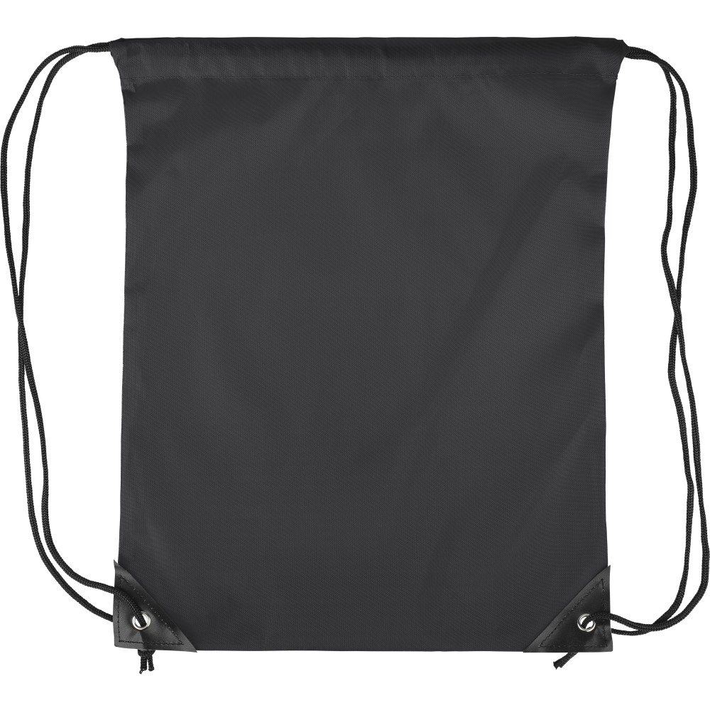 Tornazsák 210D poliészter anyagból, fekete PU sarokerősítéssel az elején, és belső varrással. Fekete nylon húzózsinórral, egy rekesszel. Űrtartalom: 5 liter, teherbíró képesség: 7 kg. Emblémázás: Szitanyomás