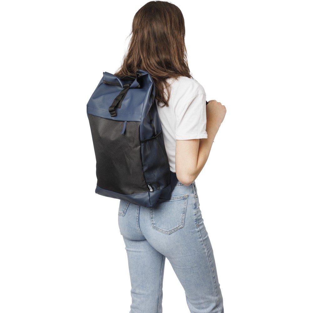 600D rPET poliészter roll-top hátizsák, kék