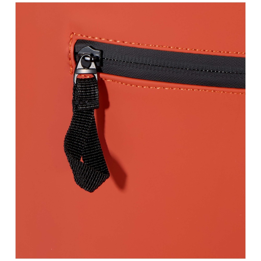Prémium, újrahasznosított PU bőrből készült, színben harmonizáló RPET béléssel, ez a rolltop hátizsák modern megjelenést és hosszú élettartamot kínál. Vízlepergető felülete megóvja a tartalmát esőtől és nedvességtől, míg a feltekerhető zárórész rugalmas pakolást tesz lehetővé - ideális laptop hátizsákként ingázáshoz, utazáshoz vagy edzőterembe. Belsejében párnázott rekesz található, amely akár 15,6" laptopot is biztonságosan tárol, valamint egy cipzáras zseb a technikai eszközök és mindennapi kellékek rendszerezésére. A külső részen vízálló cipzárral ellátott elülső zseb biztosít gyors és biztonságos hozzáférést, míg a párnázott, állítható vállpántok és a légáteresztő hátpanel egész napos kényelmet nyújtanak. Emblémázás: Szitanyomás