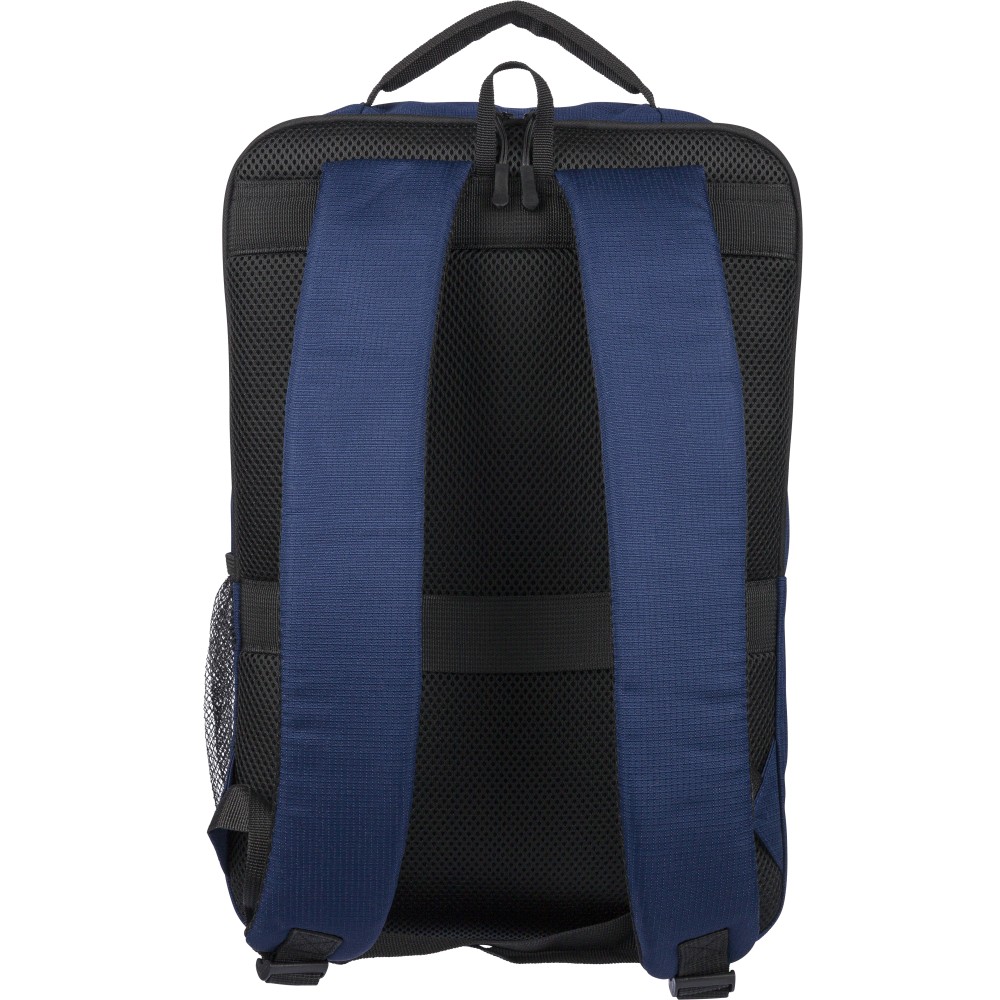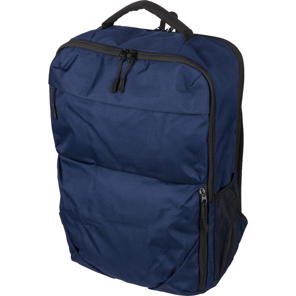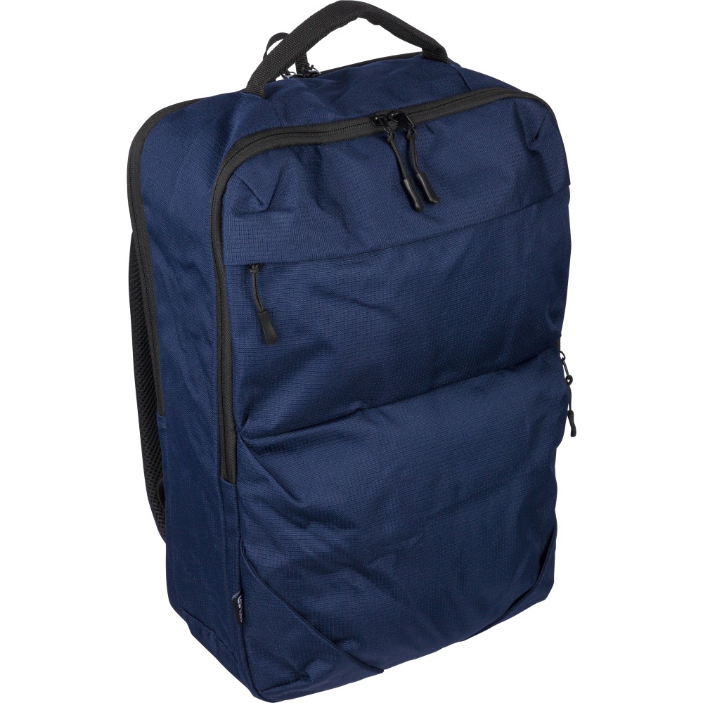 RPET 300D Ocean Bound anyagból készült hátizsák, amely újrahasznosított óceáni műanyagból készül, tartós és texturált felületű kialakítással. 20 literes űrtartalommal rendelkezik, két nagy cipzáras rekesszel, párnázott 15 hüvelykes laptoprekesszel, két elülső zsebbel, hálós oldalzsebbel és felső fogantyúval. Szellőző vállpántokkal, párnázott hátoldallal és bőröndre rögzíthető pánttal ellátva, a terméken Ocean Bound Plastic alapanyagra utaló címke található. Emblémázás: Szitanyomás