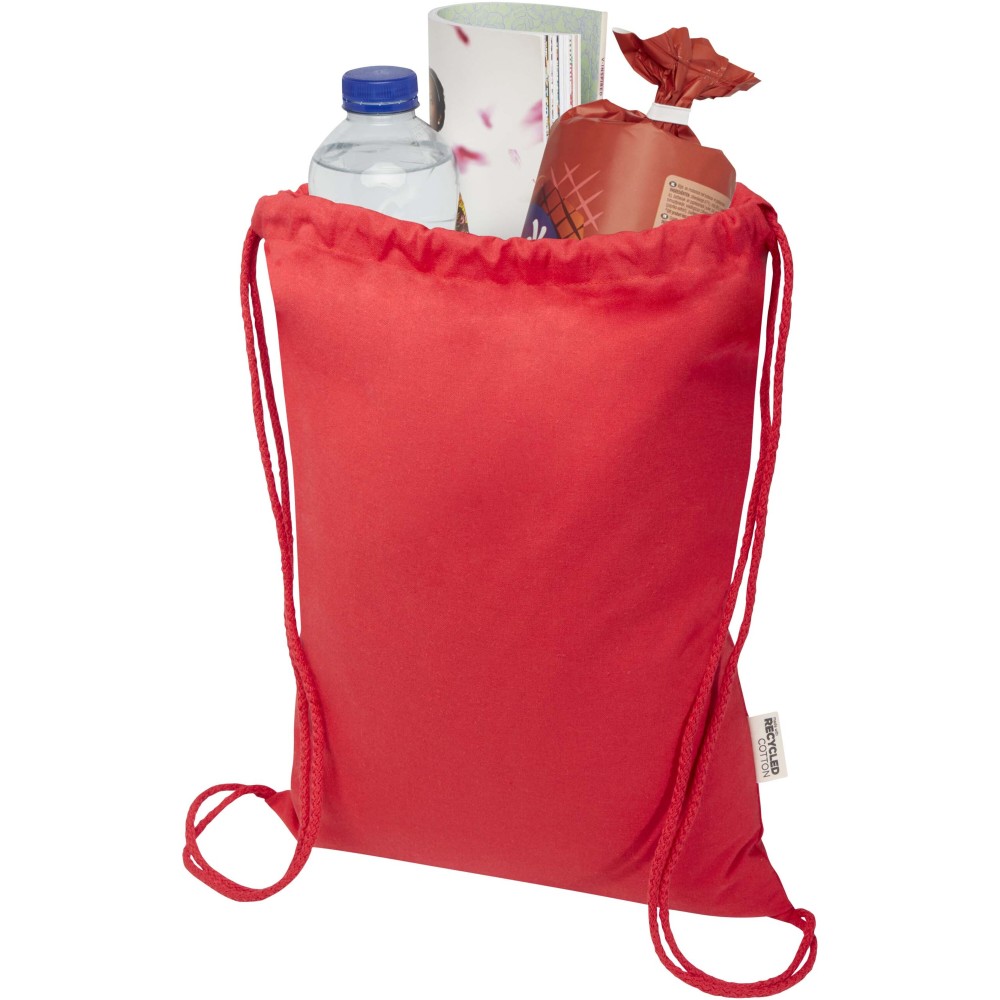 60% újrahasznosított pamutból és 40% RPET-ből készült, GRS tanúsítvánnyal rendelkező tornazsák. Egyszerre erős és könnyű megoldást kínál a mindennapi használatra. Kényelmesen hordható háton vagy vállon, nagyméretű főrekesze pedig a pamut összehúzó zsinórral gyorsan nyitható és zárható. A 180 g/m2 súlyú anyag tartós, és bőséges felületet biztosít logók vagy üzenetek megjelenítésére, így ideális promóciós ajándék márkaépítéshez vagy kampányokhoz. A hátizsák teherbírása max. 5 kg. Emblémázás: Szitanyomás