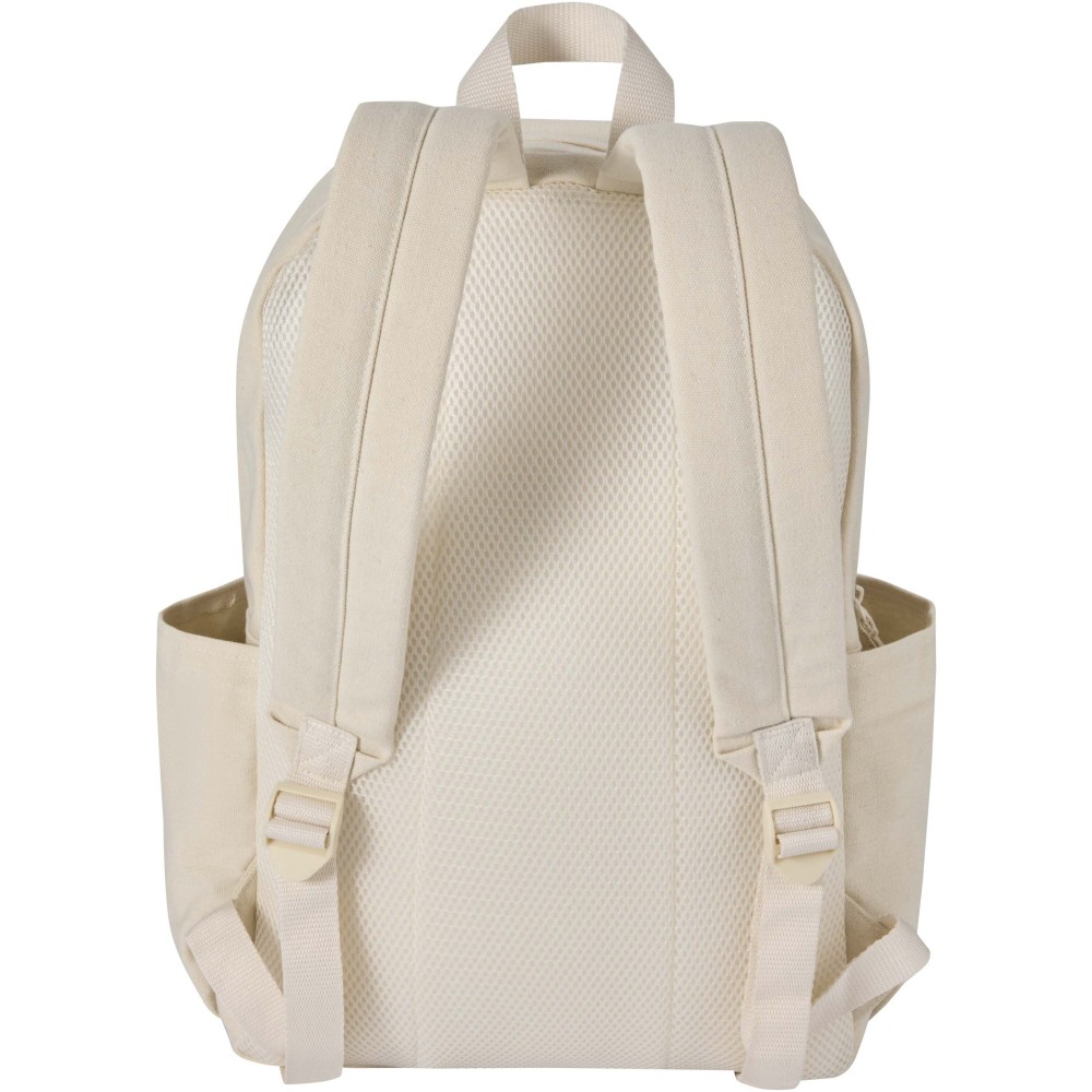 A Recanvas városi hátizsák GRS tanúsítvánnyal rendelkező, újrahasznosított és vízlepergető vászonból készült, színben harmonizáló RPET béléssel. A 16 literes űrtartalmú táska egy párnázott, 15,6"-os laptoprekesszel és egy további párnázott tárolórekesszel rendelkezik, emellett egy cipzáras elülső zsebbel, két oldalsó zsebbel, légáteresztő hálós hátrésszel és a kényelmes viseletet biztosító állítható vállpántokkal. Kialakítása révén ideális választás ingázáshoz, iskolába vagy egyéb napi használatra. Emblémázás: Szitanyomás