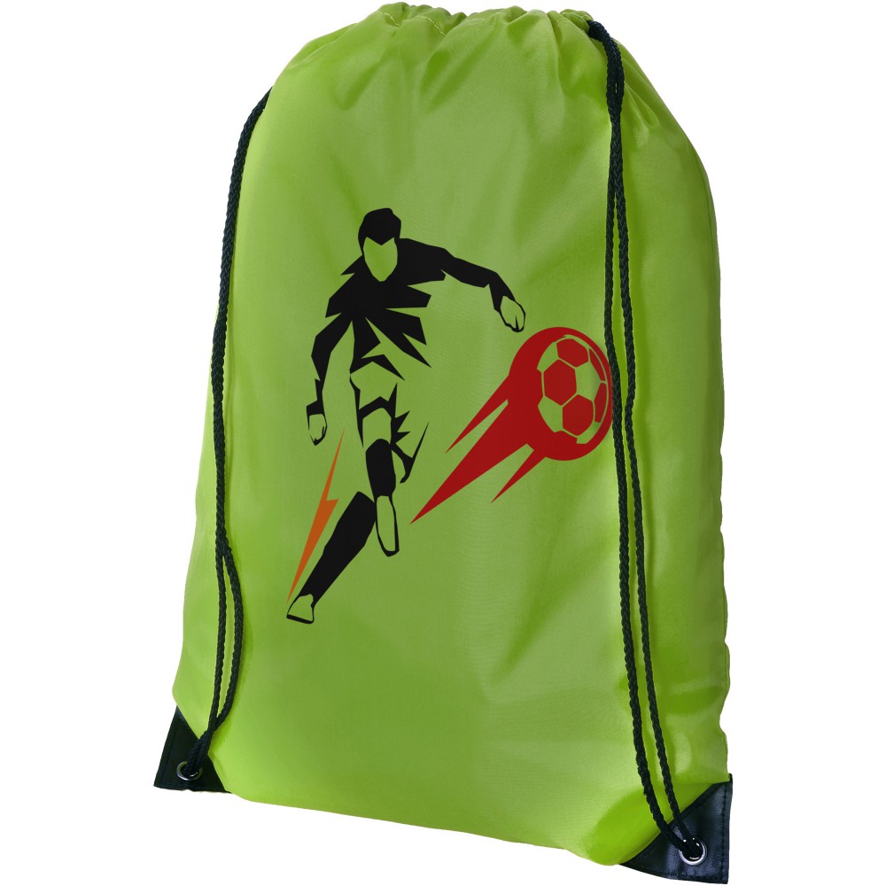Húzózsinórral zárható nagy fő rekesz. A húzózsinór kialakítása miatt vállon vagy hátizsákként is használható. 210D Polyester. Emblémázás: Szublimálás, Szitanyomás