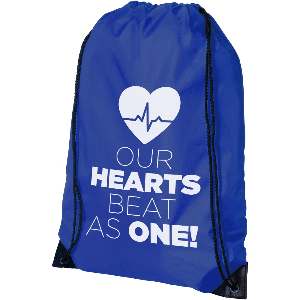 Húzózsinórral zárható nagy fő rekesz. A húzózsinór kialakítása miatt vállon vagy hátizsákként is használható. 210D Polyester. Emblémázás: Szublimálás, Szitanyomás