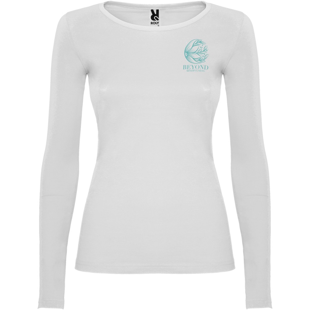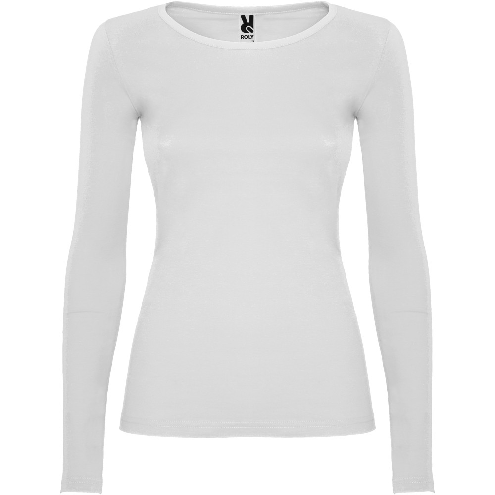 Hosszúujjú, oldalvarott, enyhén karcsúsított női póló 4 rétegű, kerek, keskeny nyakkal. Nincs ujj- és aljpasszé. Megerősített nyaki varrások. A férfi modell körkötött, a gyermek és női modell oldalvarrott. Szürke szín: 85% pamut és 15% viszkóz, 160 g/m2. Egyéb színek: 100% pamut, 160 g/m2. Emblémázás: Hímzés, Szitanyomás