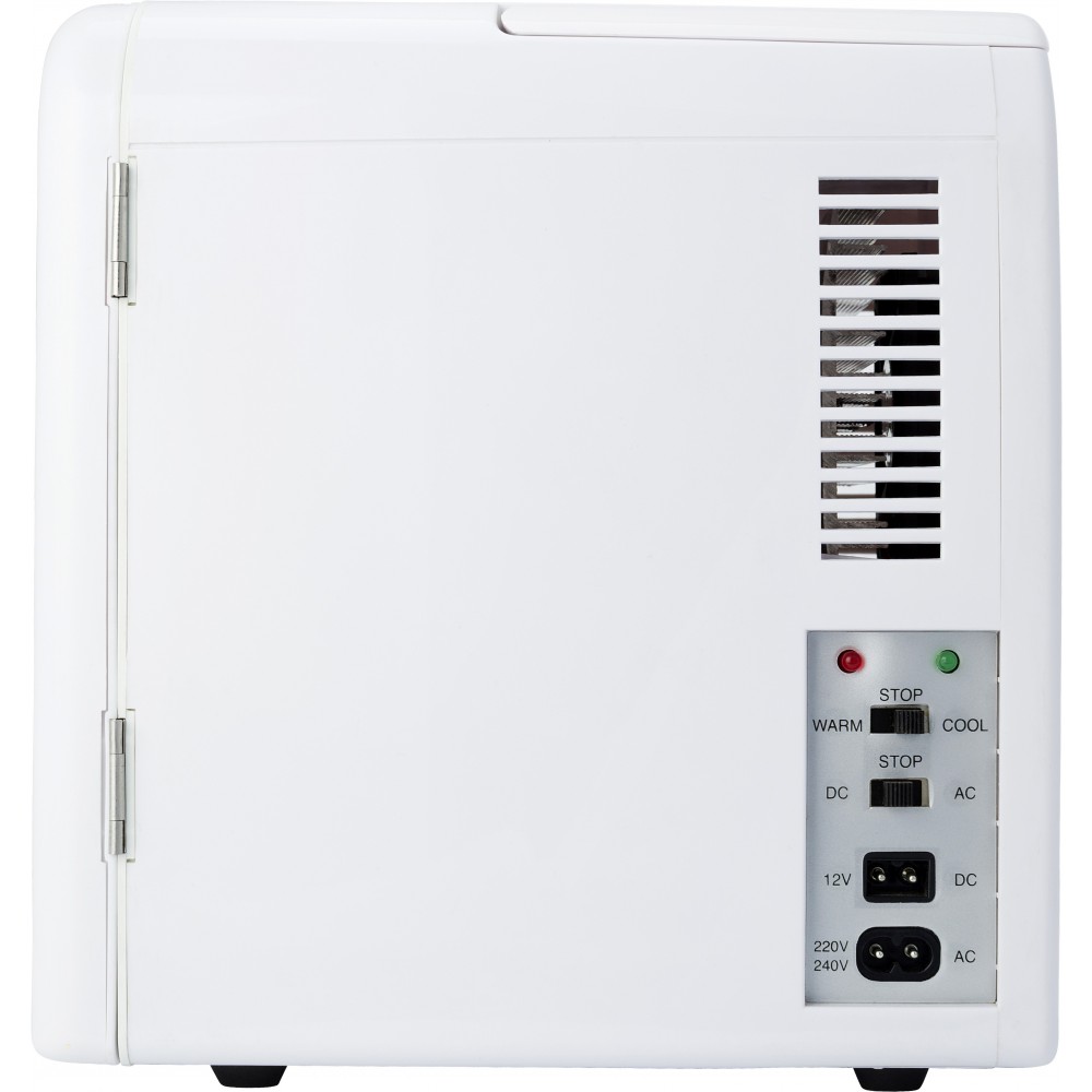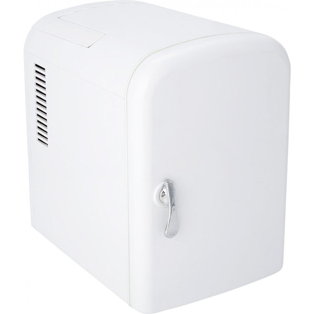 6 db dobozos üdítőital számára kialakított minihűtő. DC 12V AC 100-240V. Hűtőkapacitás -20/-25 °C a környező hőmérséklethez képest. Minimális hőmérséklet, amit biztosít: -2 °C. Fűtőkapacitás 50 °C. Autóban is használható, szivargyújtóhoz csatlakoztatható. Emblémázás: Tamponnyomás