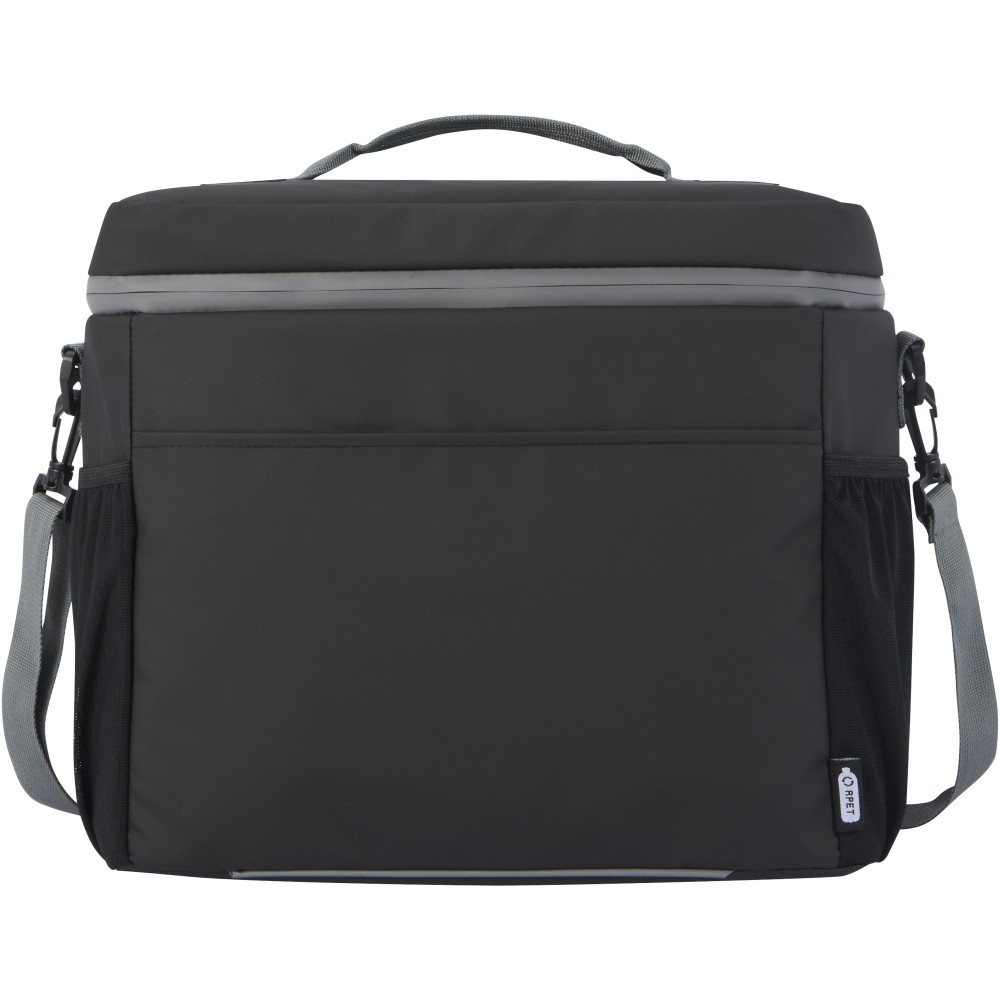 Vízálló 20 dobozos hűtőtáska, amely GRS tanúsítvánnyal rendelkező újrahasznosított anyagokból készült, beleértve a cipzárakat is. Tágas, cipzáras rekesszel rendelkezik, amely élelmiszer-biztonságos és extra vastag, nagy sűrűségű hőszigetelő PEVA és habszigeteléssel van bélelve, így az italok és frissítők órákig hidegen maradnak. Emellett 2 hálós zsebbel és egy nyitott elülső zsebbel rendelkezik további tárolási lehetőségként. A hevederes fogantyú és az állítható és párnázott vállpánt kényelmessé teszi a hordozást. A GRS újrahasznosított anyagai közé tartozik a főszövet, a bélés, a hevederek és a cipzárak. Nem mosható. Űrtartalom: 22 liter. PVC-mentes. Emblémázás: Szitanyomás