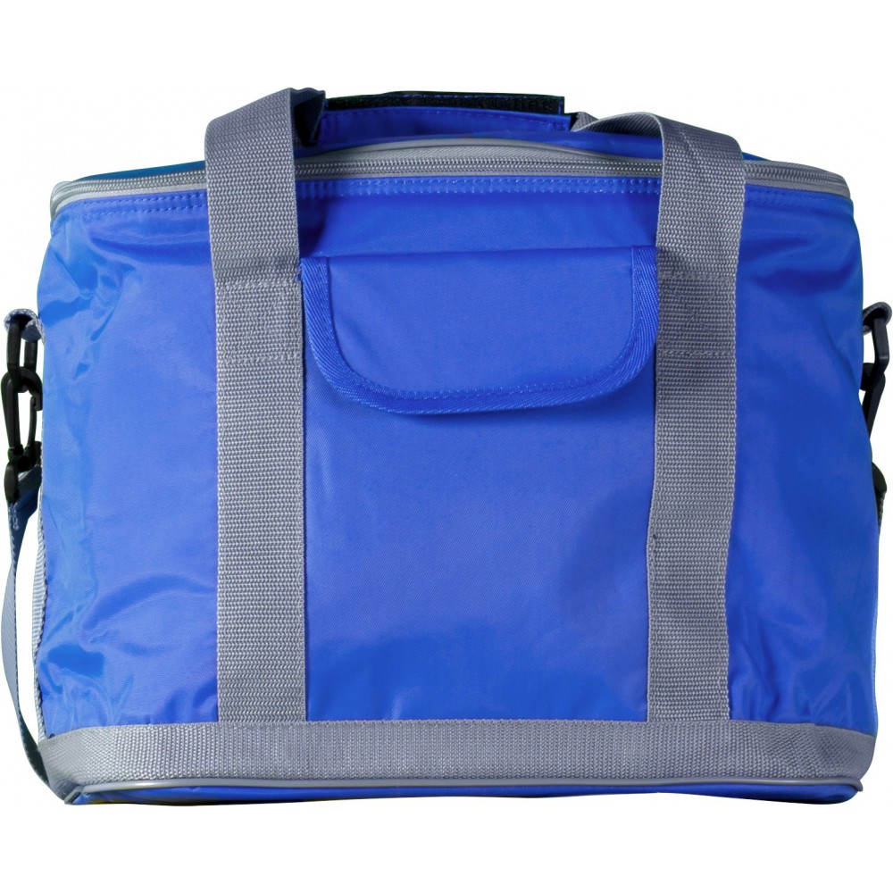 Hűtőtáska külső zsebbel, állítható vállpánttal. 420D nylon. Emblémázás: Szitanyomás