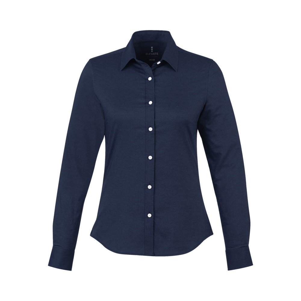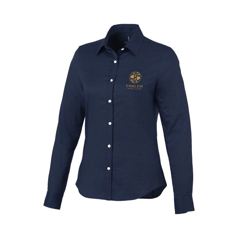 Normál szabásvonal. Elevate logóval gravírozott, fehér gombok. Alulról a második gomblyuk narancssárga öltésekkel dekorálva. Két gombos, állítható kézelő gombolás. Tónusos logónyomat hátul. Szatén szegély a nyakvonalban. Legombolható gallér (férfi). 100% pamut Oxford anyag. Emblémázás: Hímzés