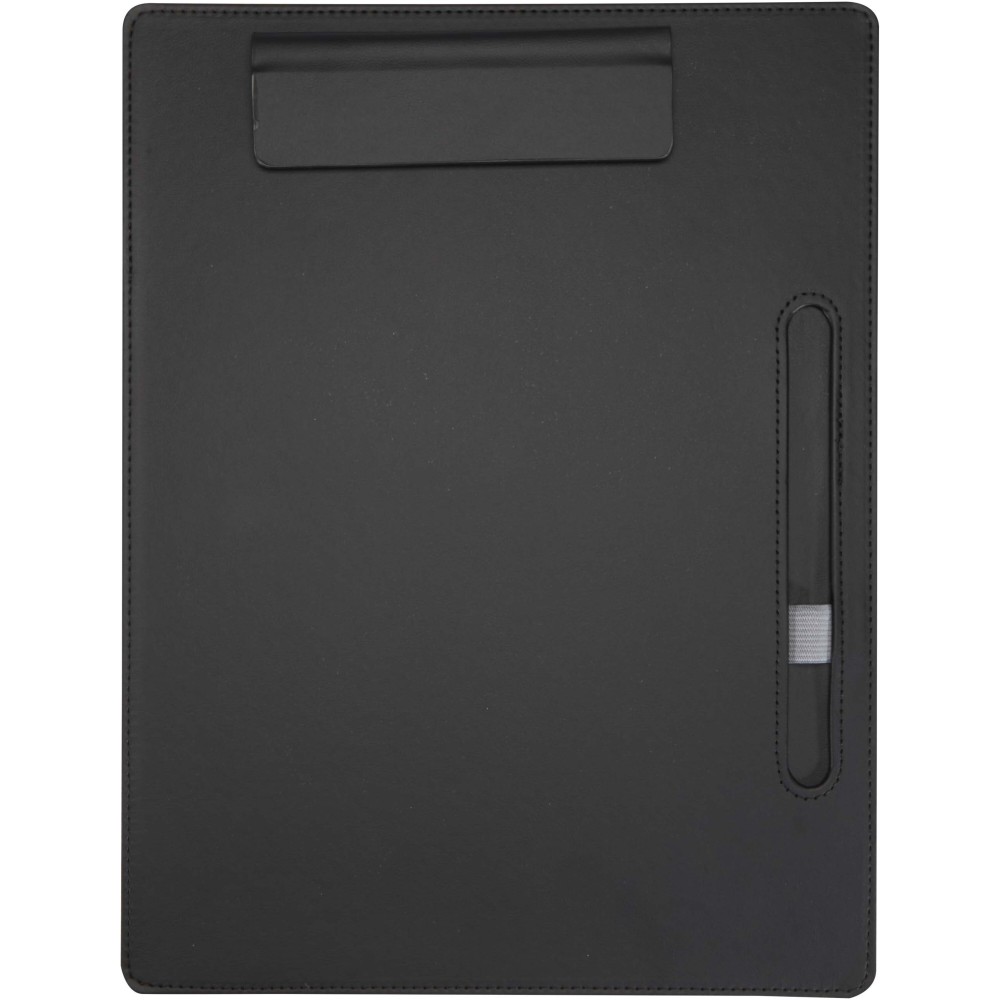A Clast felírótábla a letisztult PU-műbőr megjelenést ötvözi a praktikus funkciókkal, így ideális választás tárgyalásokhoz és a mindennapi használathoz egyaránt. A standard A4-es méretű lapokhoz tervezett eszköz mágneses rögzítővel, varrott szélekkel és beépített tolltartó pánttal rendelkezik. A 25,5 × 33 cm-es tábla 26 darab 65 g/m2 súlyú vonalas papírt, valamint egy golyóstollat is tartalmaz, amelynek felső része újrahasznosított műanyagból, alsó része pedig RCS tanúsítvánnyal rendelkező újrahasznosított alumíniumból készült. A készletben található Juana golyóstoll külön is elérhető. Fekete tollbetéttel. Emblémázás: Szitanyomás, UV nyomtatás