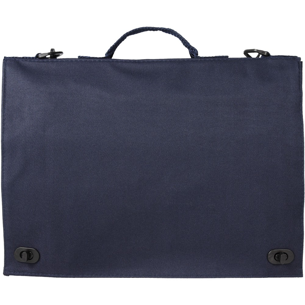 Csattal zárható füles konferenciatáska, állítható vállpánttal, több irattartó zsebbel. Emblémázás: Szitanyomás