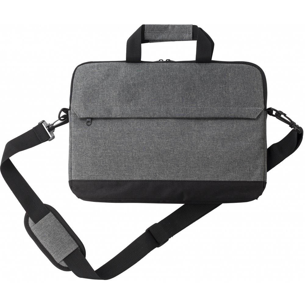 Laptoptáska 15"-es laptophoz. Egy nagy cipzáros rekesz, belül párnázott. Elöl egy cipzáras zseb. Állítható vállpánttal. 600D poliészter. Emblémázás: Szitanyomás