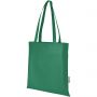 A tartós és szakadásálló RPET anyagból készült Zeus GRS újrahasznosított táska tökéletes és fenntarthatóbb megoldás vásárokra vagy konferenciákra. Vékony kialakítása elegáns modellé teszi, és alkalmas könnyű tárgyak, például egy jegyzetfüzet és egy toll szállítására. Fülei 29 cm hosszúak, ezért a táska könnyen hordozható vállon. Teherbírás: 5 kg. Emblémázás: Szitanyomás