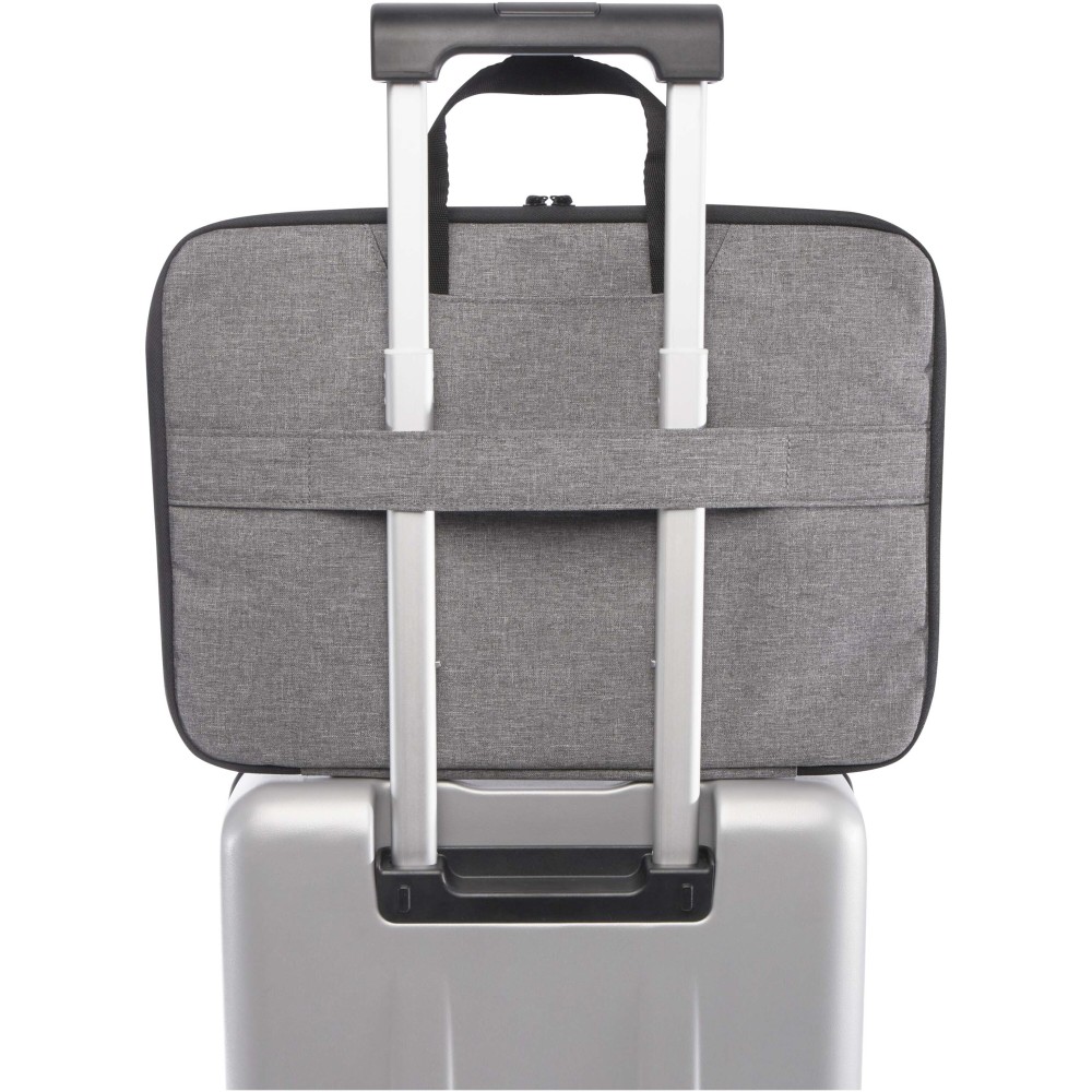 A Libra 2 az 1-ben laptop táska praktikus kialakításának és átgondolt funkcióinak köszönhetően ideális mindennapi ingázáshoz vagy utazáshoz. GRS tanúsítvánnyal rendelkező újrahasznosított poliészterből, valamint RPET béléssel készült, főrekesze pedig 180 fokban nyitható a biztonsági ellenőrzések megkönnyítése érdekében. A táska egyik oldalán minőségi neoprénnel védett laptoprekesz, a másik oldalán két hálós zseb található, emellett cipzáras elülső zseb, hátoldali bőröndpánt és két nyitott zseb biztosít extra tárolóhelyet. A szövet fülek könnyedén elrejthetők, így a táska egyszerűen laptop toként is használható. Emblémázás: Szitanyomás