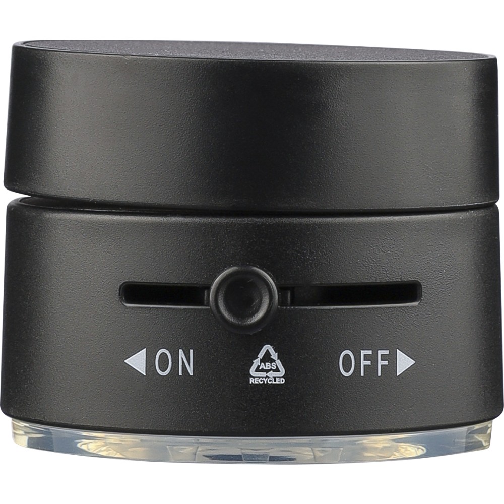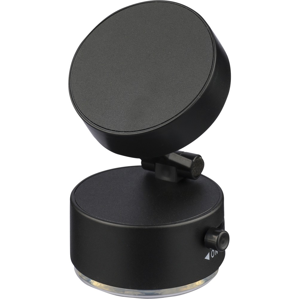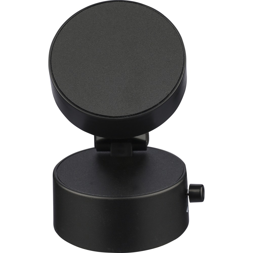 Újrahasznosított ABS anyagból készült MagSafe telefontartó tapadókorongos talppal és rögzítő funkcióval sima felületeken való használathoz. Összecsukható kialakítással és fém gyűrűvel. Az on/off jelölés között gravírozott recycled (újrahasznosított) alapanyagra utaló logó található. Barna kartondobozba csomagolva. Emblémázás: Tamponnyomás
