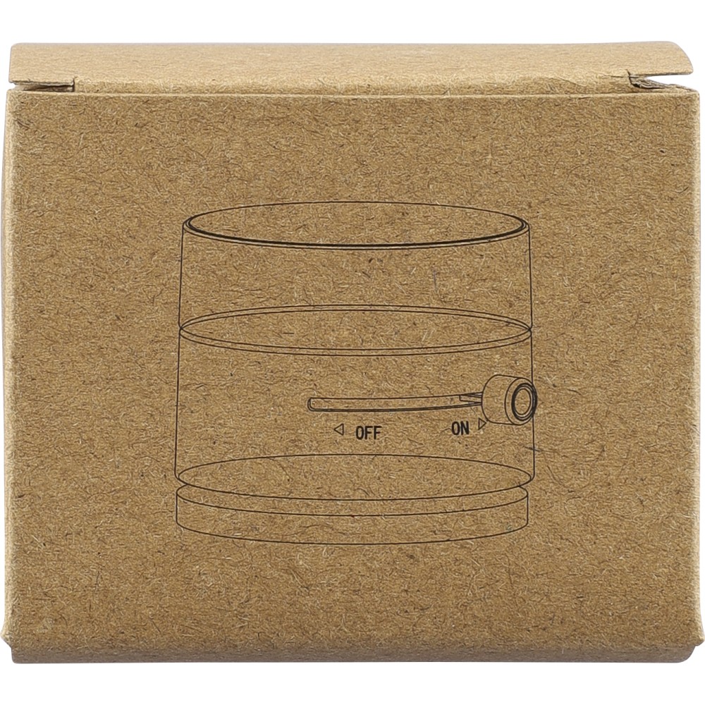 Újrahasznosított ABS anyagból készült MagSafe telefontartó tapadókorongos talppal és rögzítő funkcióval sima felületeken való használathoz. Összecsukható kialakítással és fém gyűrűvel. Az on/off jelölés között gravírozott recycled (újrahasznosított) alapanyagra utaló logó található. Barna kartondobozba csomagolva. Emblémázás: Tamponnyomás