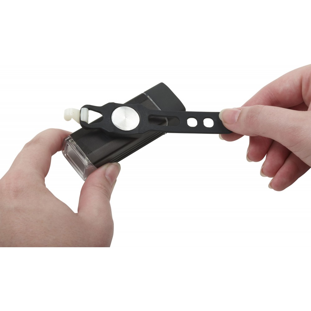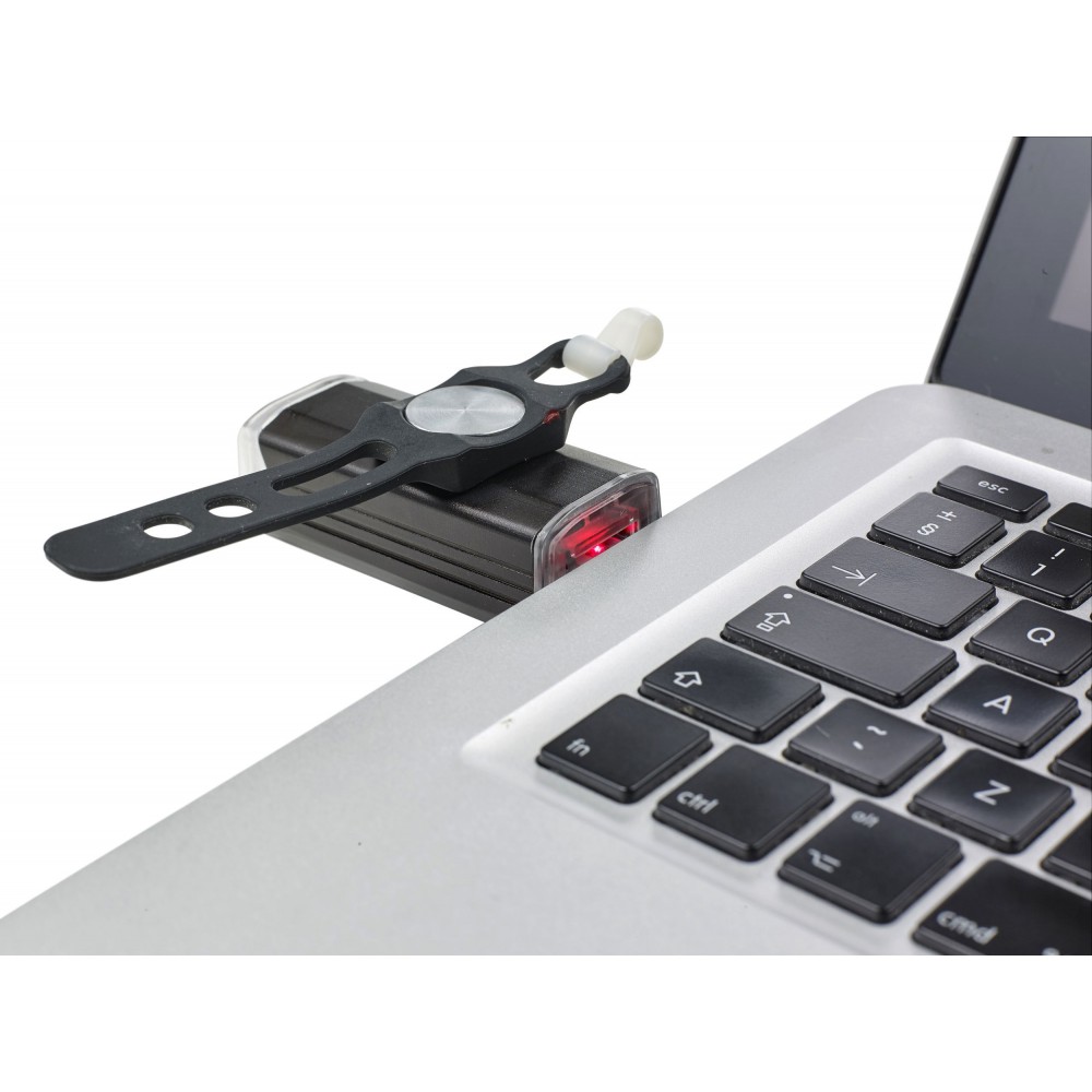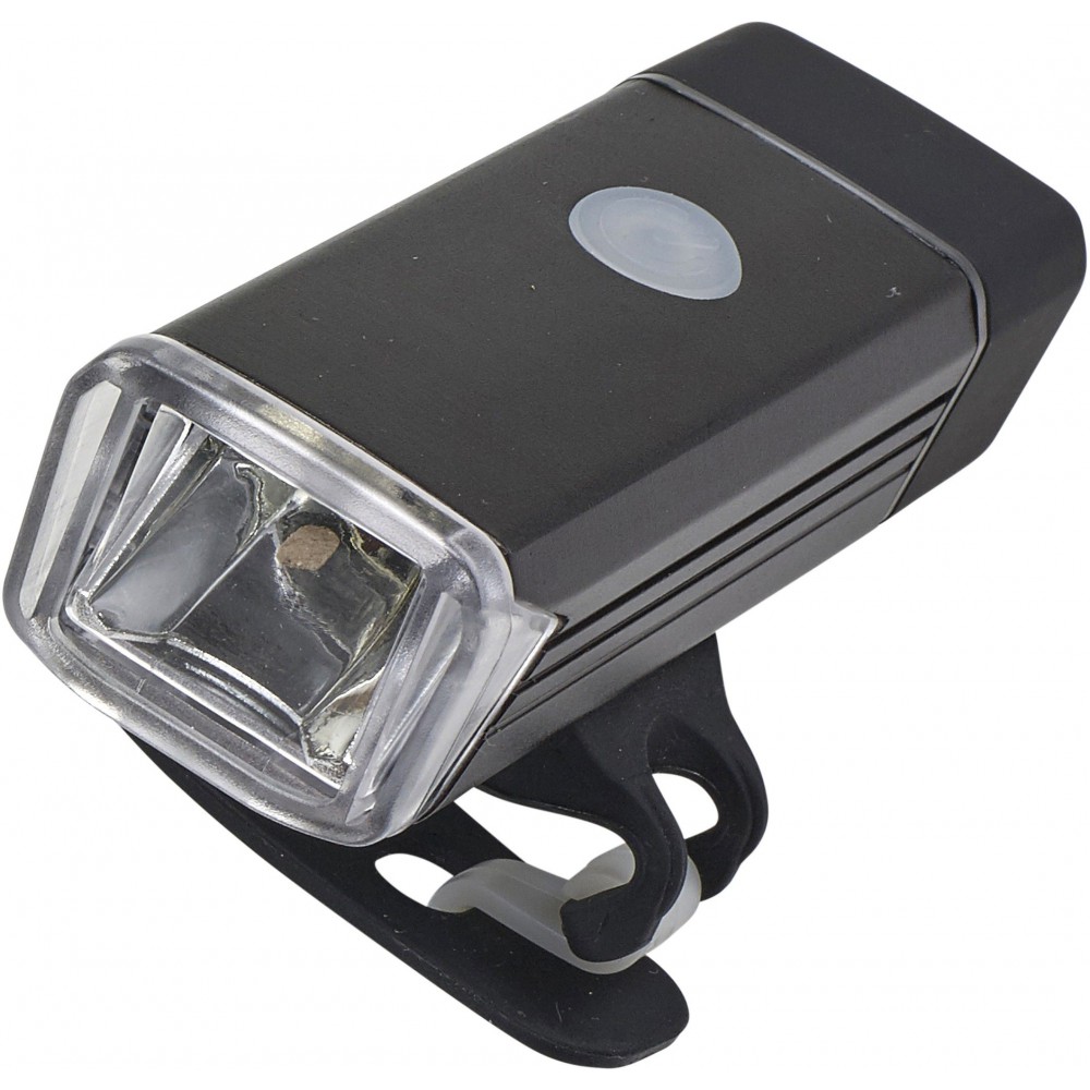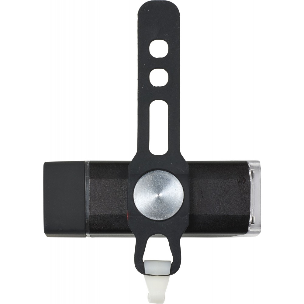 COB biciklilámpa USB csatlakozóval, amely a töltést is lehetővé teszi, tetején ki-/bekapcsoló gombbal, 4-féle beállítási móddal: folyamatosan világító, csökkentett fényerővel világító, gyors villogó, lassú villogó. Mágneses pánttal rögzíthető a kerékpár kormányára. Emblémázás: Gravírozás