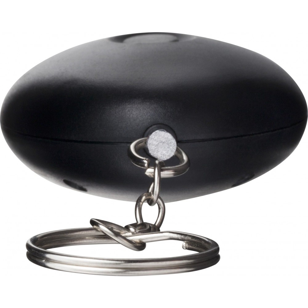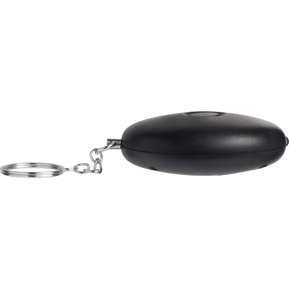 Riasztó kulcstartóval. A LED-lámpa és a riasztó hangja gombbal indítható el. Az elemet tartalmazza. 102 dB-lel szól. ABS műanyag. Emblémázás: Tamponnyomás