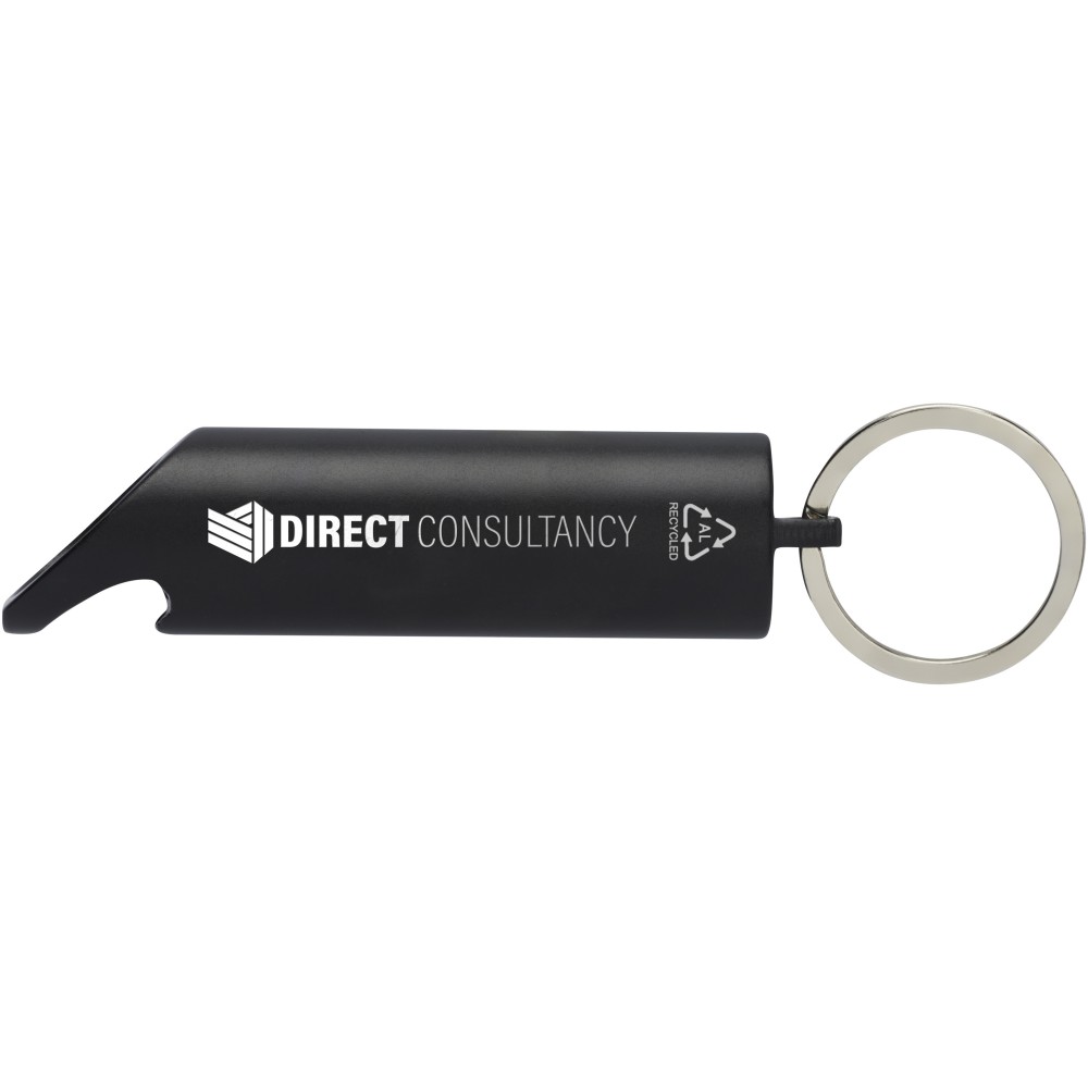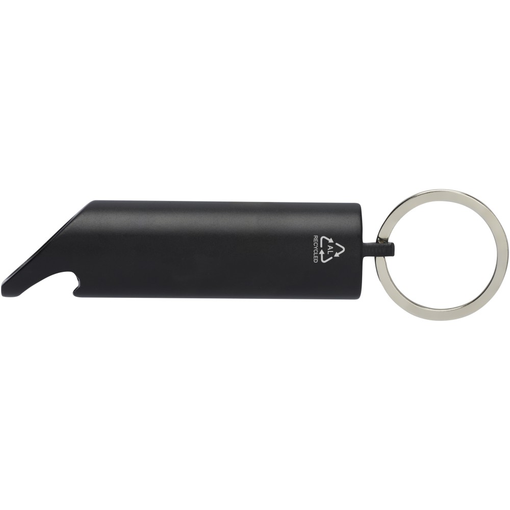 LED zseblámpa üvegnyitóval, be-/kikapcsoló gombbal és fém kulcskarikával. Könnyű és erős, 63%-os RCS tanúsítvánnyal rendelkező újrahasznosított alumíniumból készült. A Recycled Claim Standard (RCS) a termék újrahasznosított tartalmát a teljes ellátási láncban ellenőrzi. Különféle feltűnő színekben, fémes bevonattal kapható. Három LR44 elemmel szállítjuk. Újrahasznosított alumínium. Emblémázás: Gravírozás, Tamponnyomás