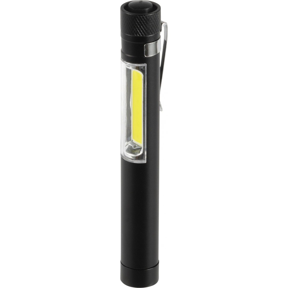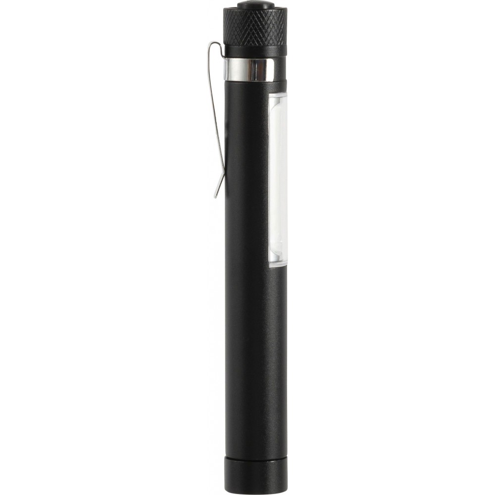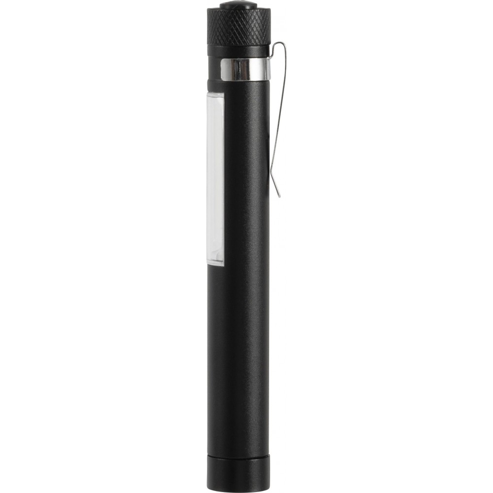 COB zseblámpa (50 lumen) mágnessel az alján és fém zsebklipsszel. Tartalmaz elemeket. Egyenként fehér dobozba csomagolva. Anyaga: alumínium. Emblémázás: Gravírozás, Tamponnyomás