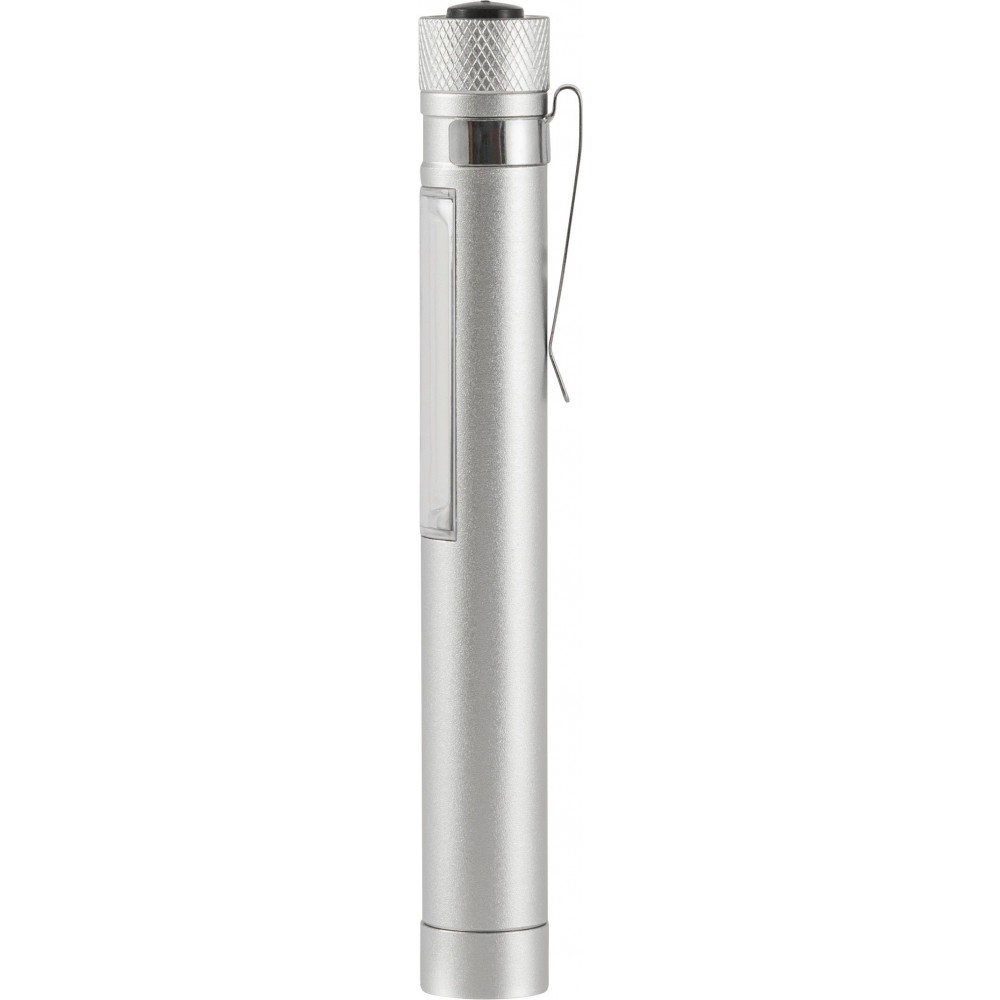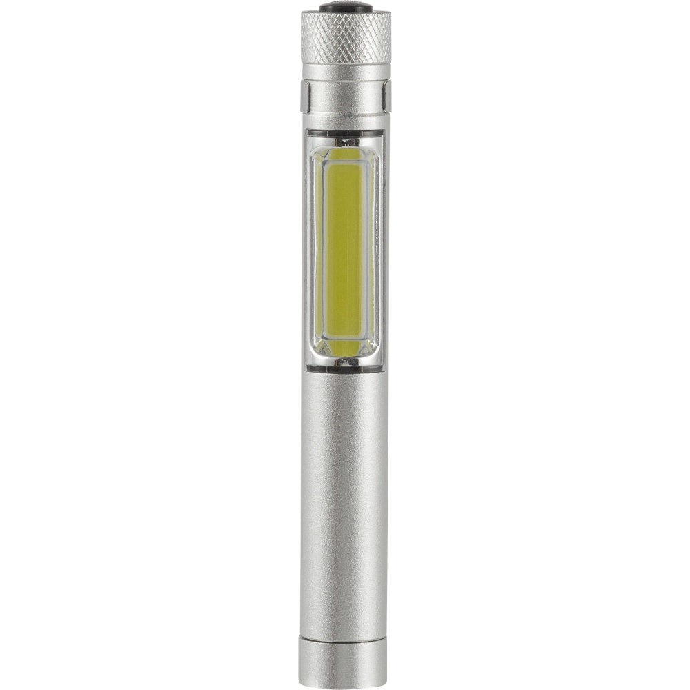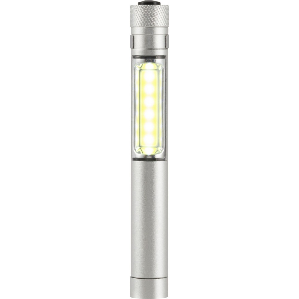 COB zseblámpa (50 lumen) mágnessel az alján és fém zsebklipsszel. Tartalmaz elemeket. Egyenként fehér dobozba csomagolva. Anyaga: alumínium. Emblémázás: Gravírozás, Tamponnyomás