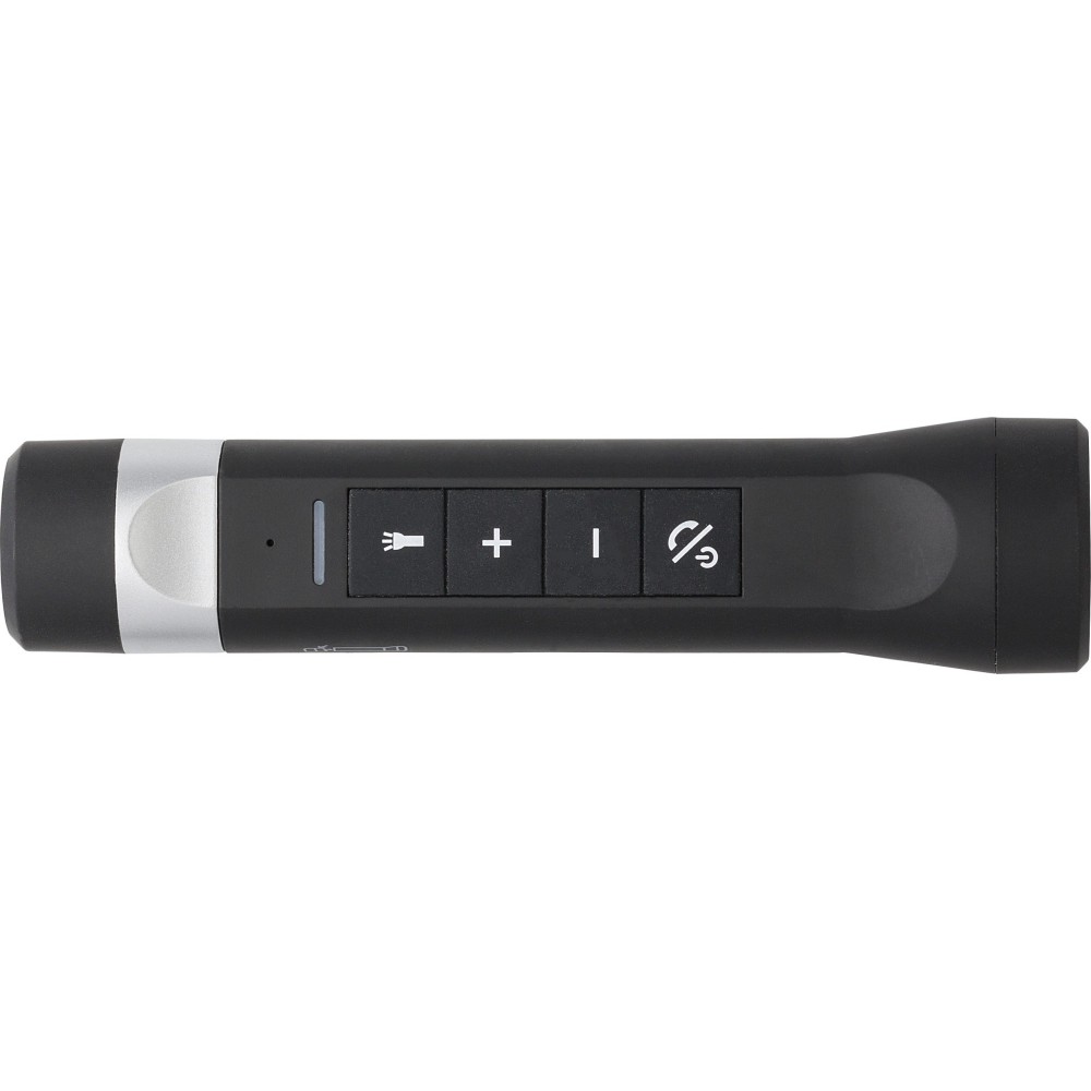 LED lámpa, vészhelyzeti powerbank és vezeték nélküli hangszóró kerékpárra. A töltőkábelt és a biciklikormányra való rögzítőt tartalmazza. V5.0. Emblémázás: Tamponnyomás